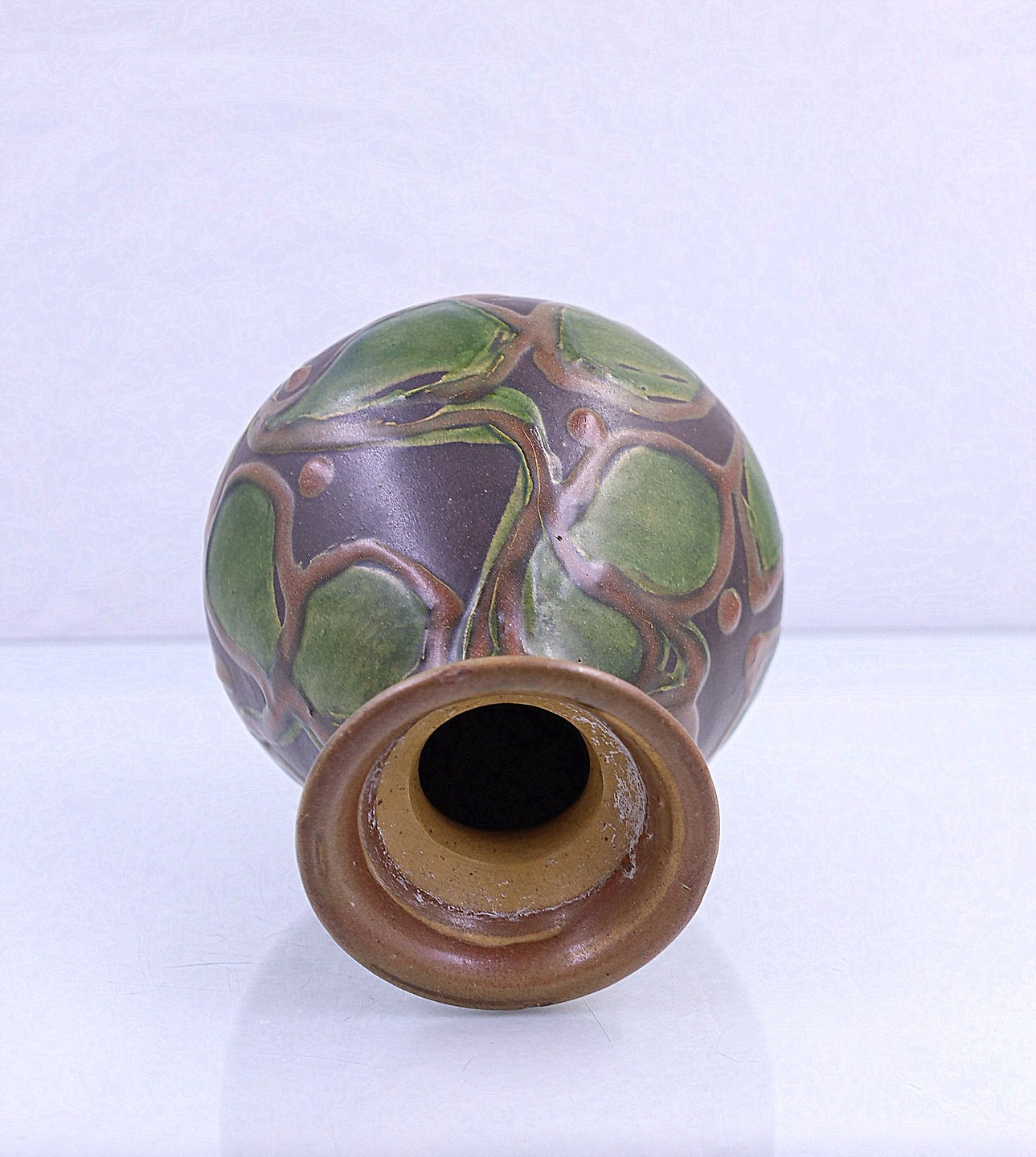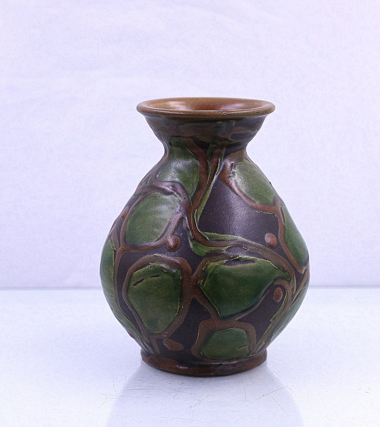 HAK = Herman A. Kähler Vase i glaseret keramik. Glasur i grønne og sorte nuancer. Fremstillet 1930/40'erne.