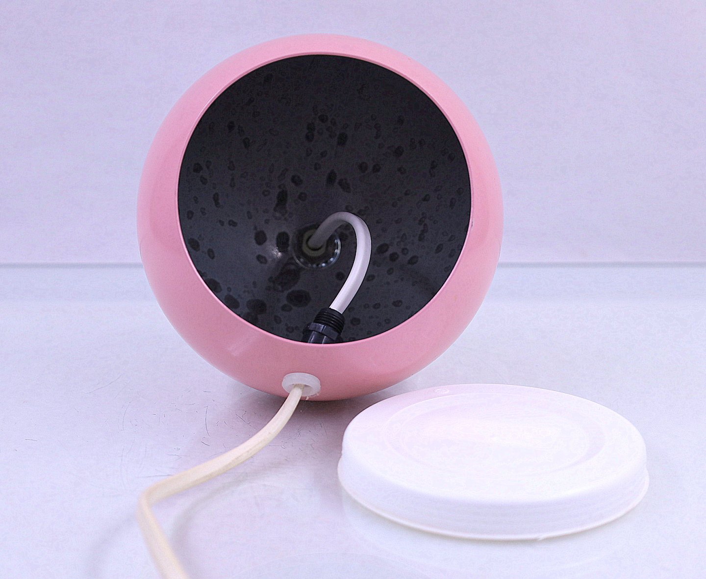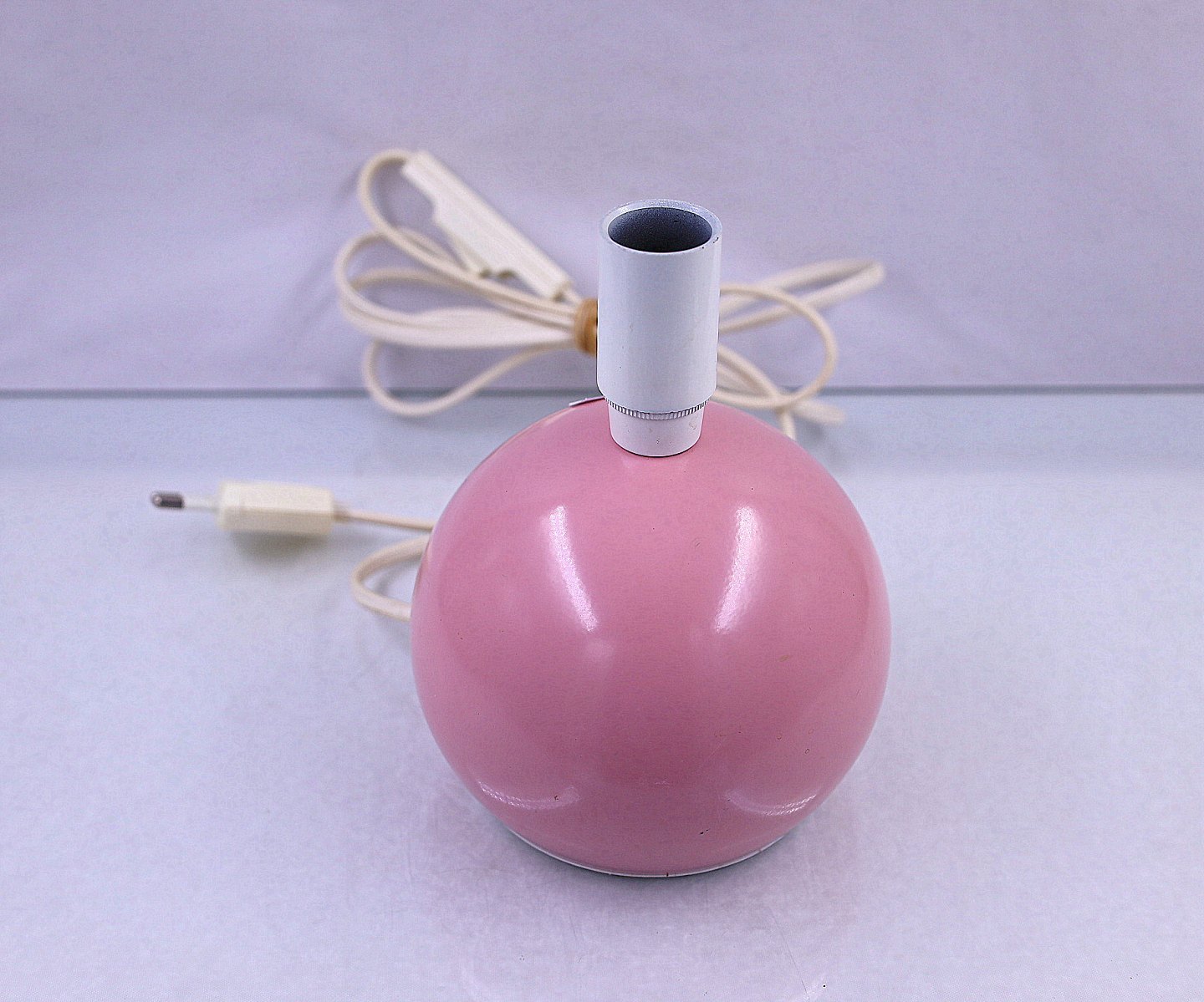 Bordlampen er lyserød, bunden er af plastik og kan tages ud.