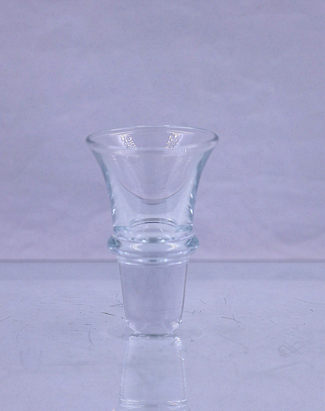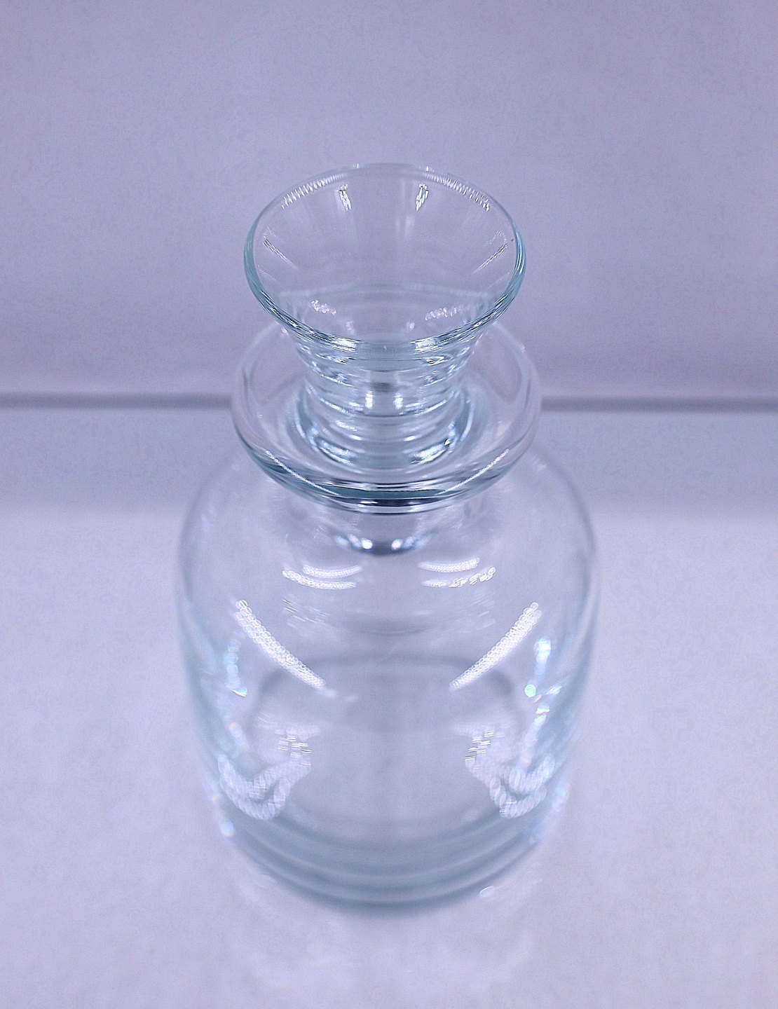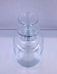 Holmegaard Glasværk. Lav karaffel , medtilhørende prop, formet som drikkeglas. Glasset bliver også kaldet "Morgenlærke". Karaflen, der er fra serien "Snapsedoktoren, er lav og rund, med et godt greb i alle situationer.