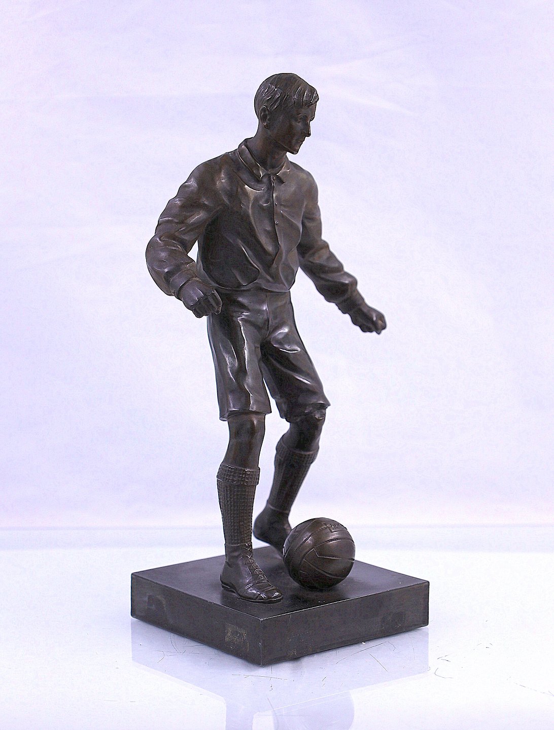 Figur af fodboldspiller, udført i bronze. Figuren er uden navn og signatur