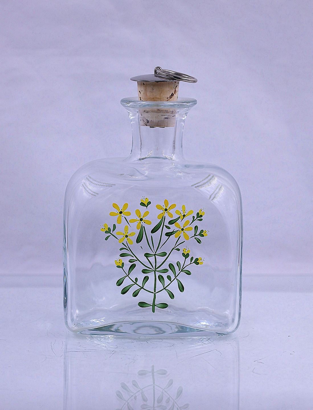Holmegaard Glasværk. Flora karaffel. Karaffel med påmalet urtemotiv.