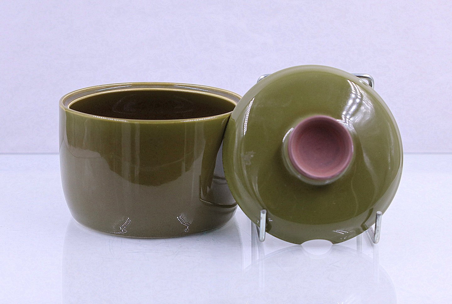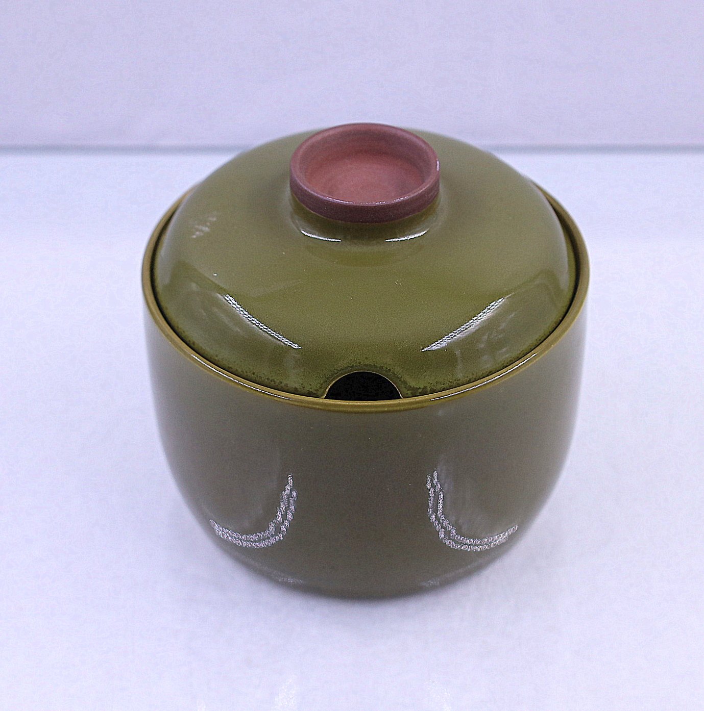 Aluminia, Timiana, fajance. Sukkerskål lmed låg, hel grøn. Produceret fra ca. 1960 til 1969.