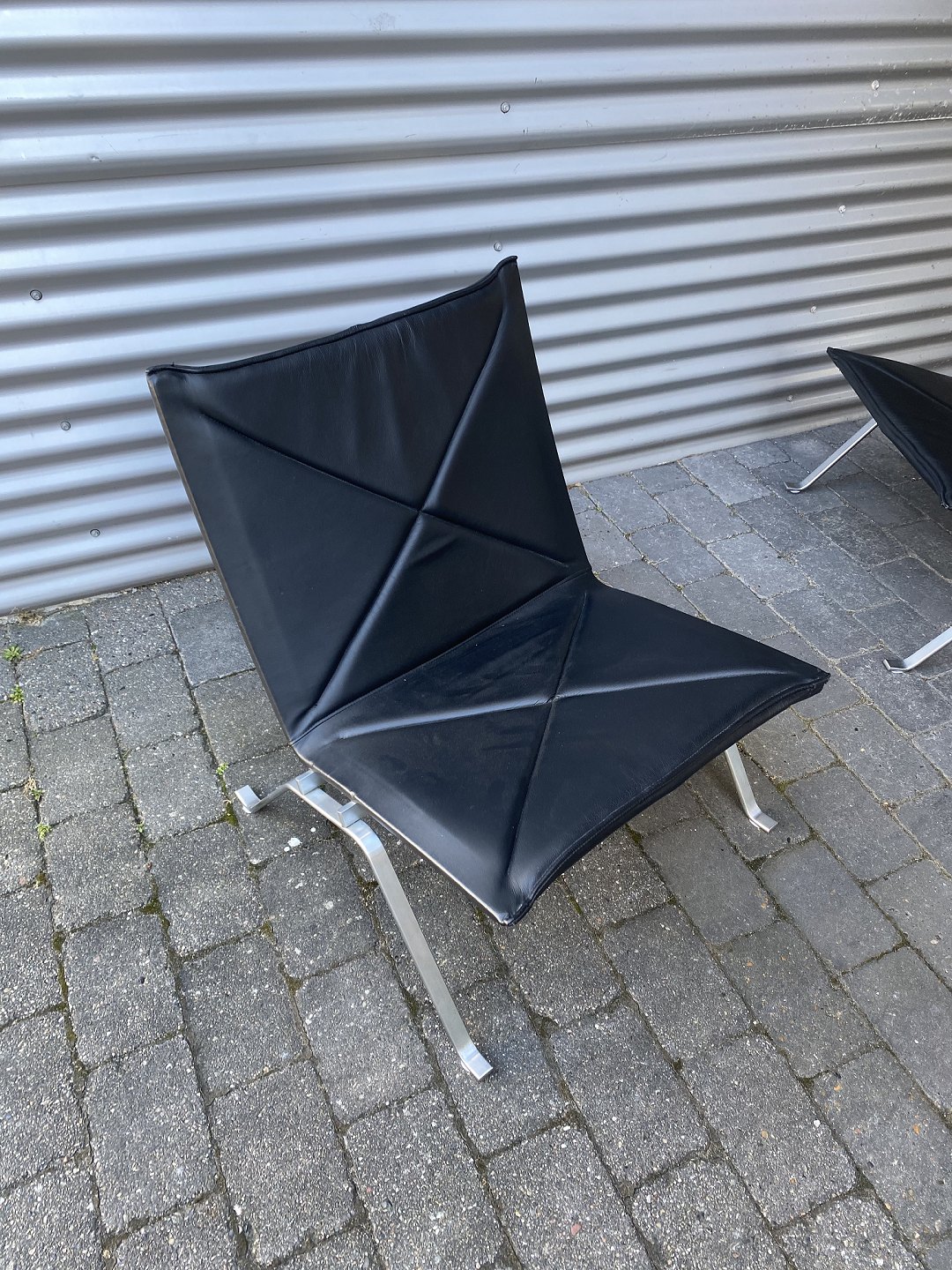 2 lænestole i sort læder model PK22, nypolsteret