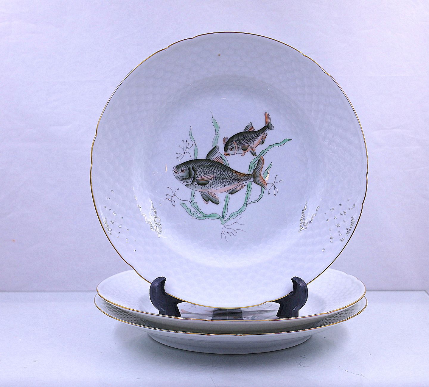 Bing & Grøndahl. Fisketallerken, nr. 25. Motivet er 12. Brasen (Abramis brama). Tallerkenen er af hvidt porcelæn med skelkant og guldkant.
