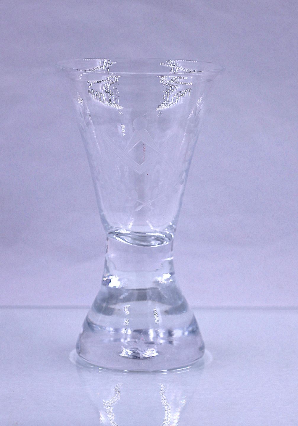 Loge glas med med passer og vinkel samt laurbærkrans.