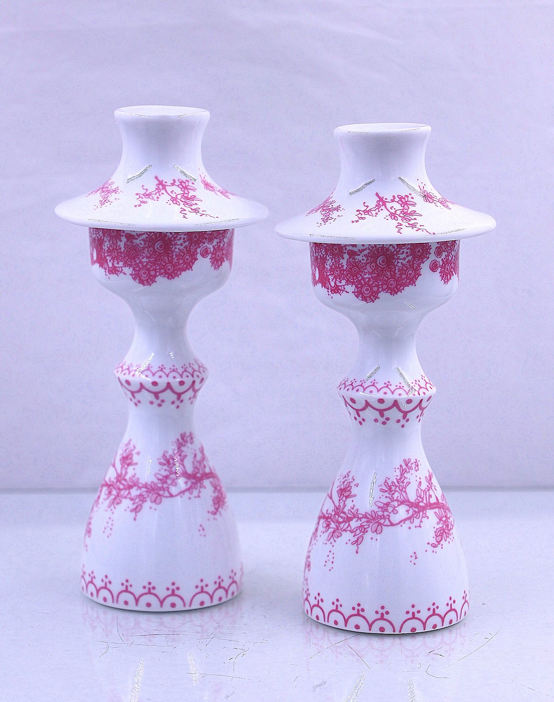 Bjørn Wiinblad. Rosa Felicia lysestager, sæt.