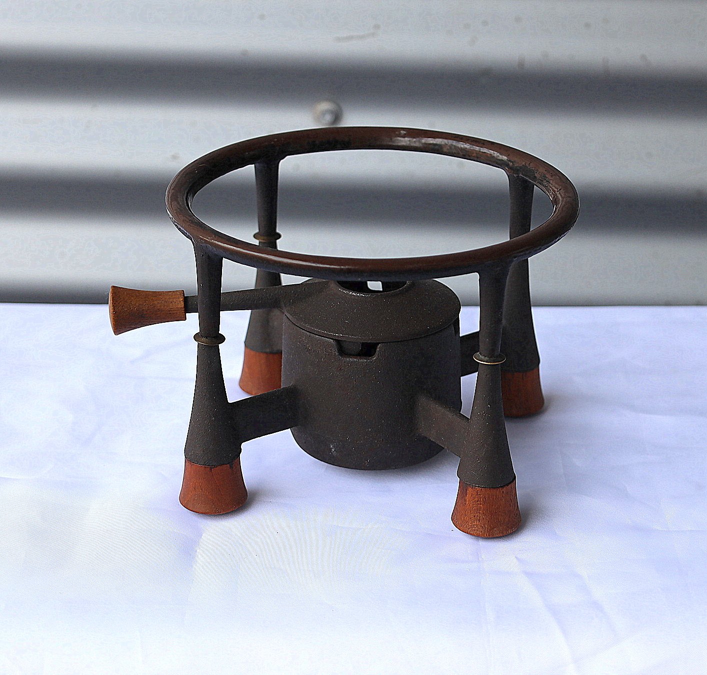 IHQ = Jens Harald Quistgaard. Gul fonduegryde med brænder. Gryde "France". Gryden er gul emaljeret jern og brænderen er støbejern. Fondue sættet bliver kaldet " Kobenstyle". Fondue sættet kommer med gryde med teaktræ håndtag, og brænder med låg med teaktræ håndtag og fødder af teaktræ.
