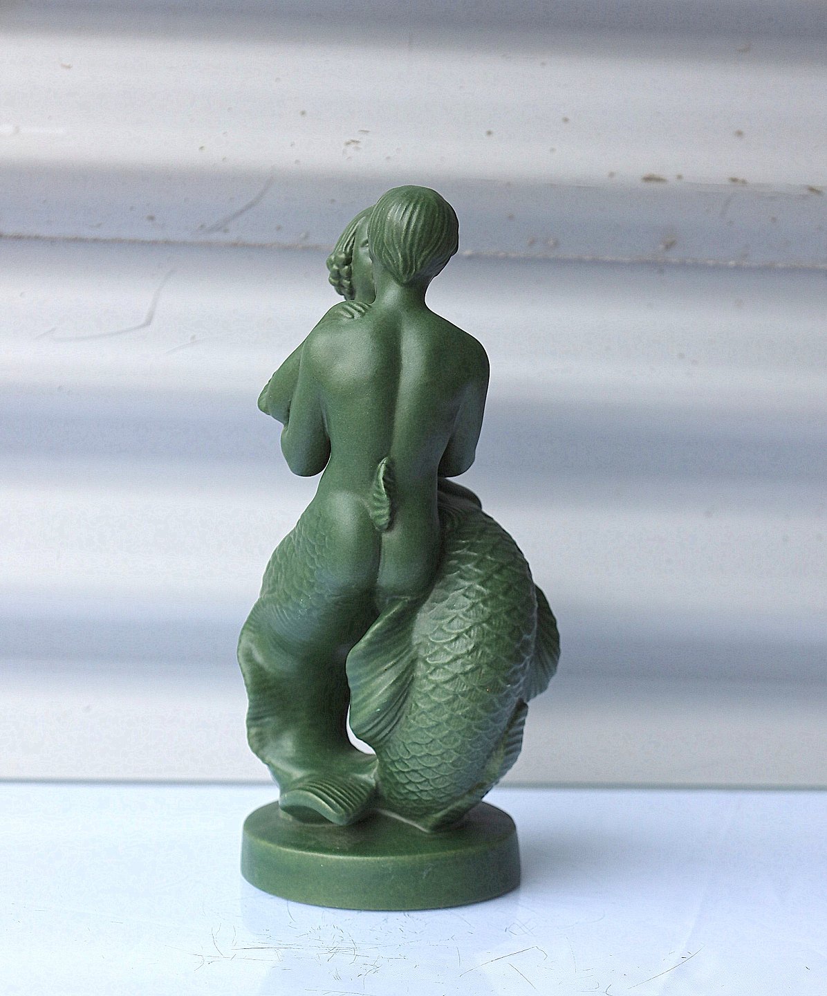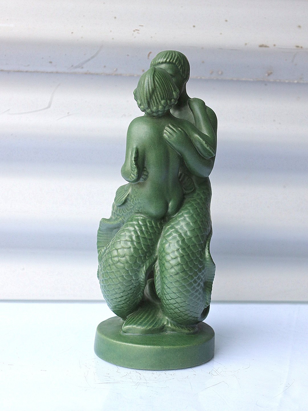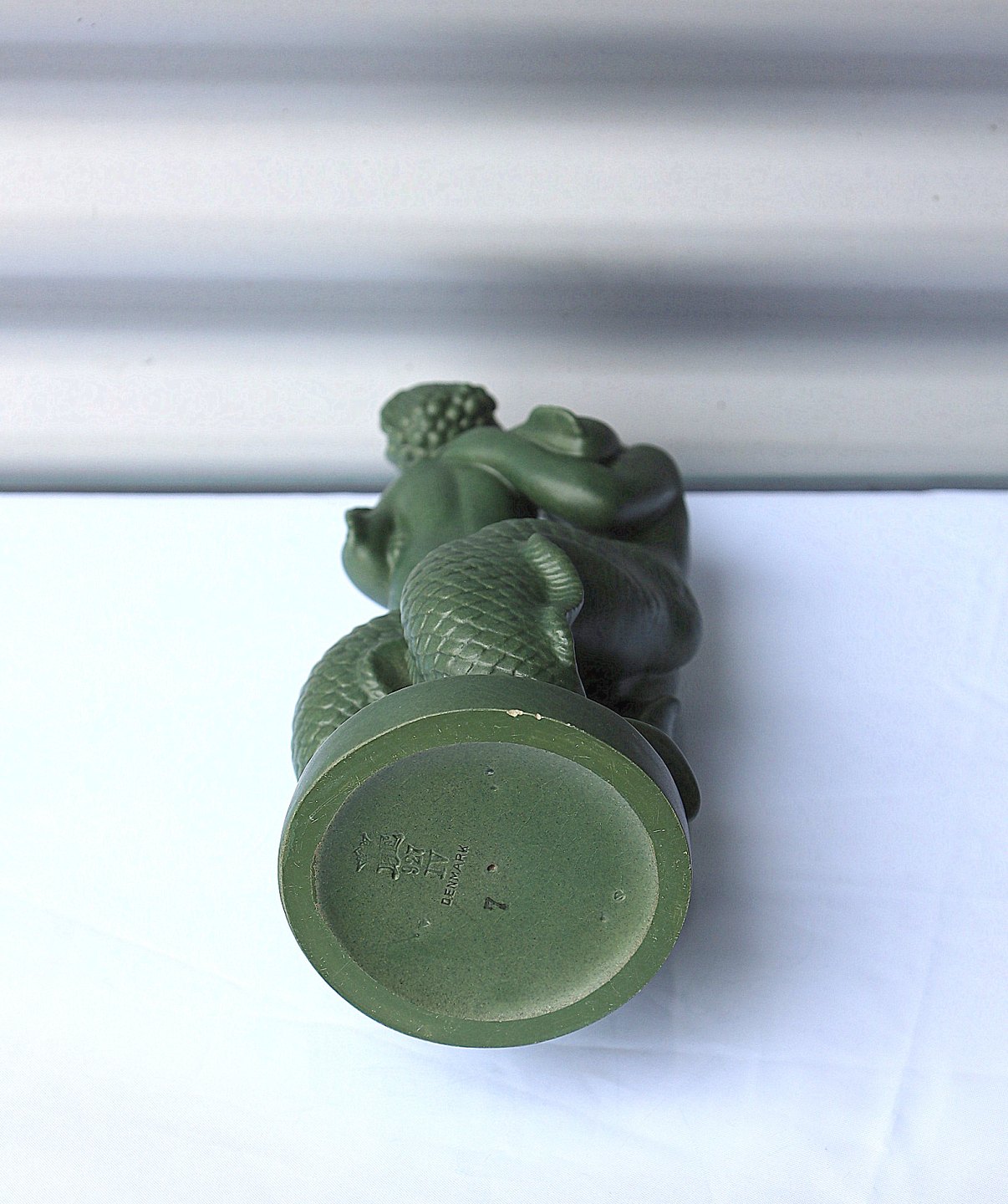 Ipsen Denmark nr. 927, IV. Keramik figur "Havmand & havfruen". Figuren er helt grønglaseret.