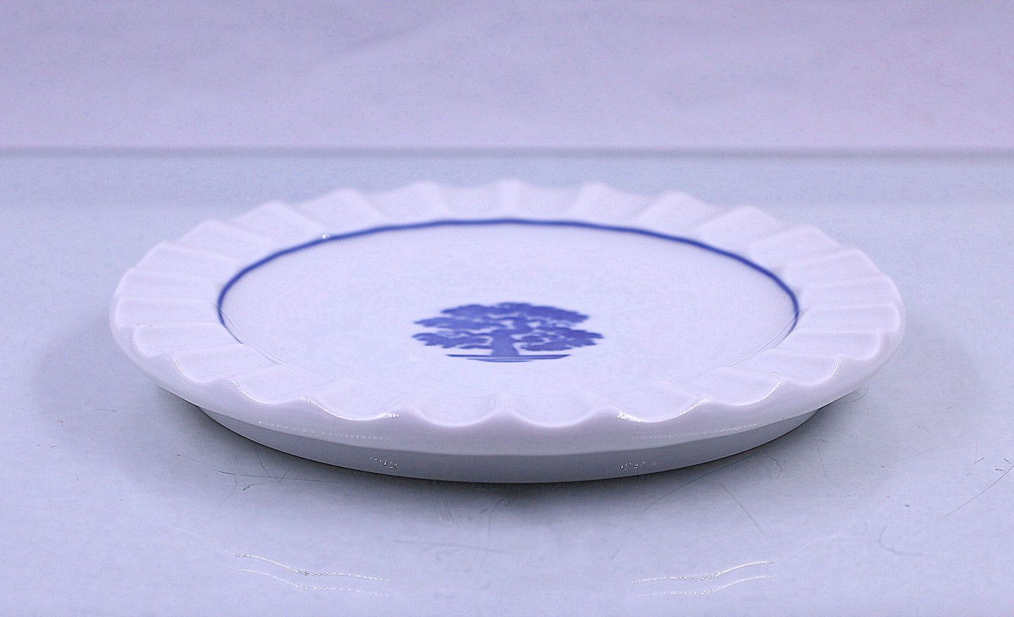 Bing & Grøndahl. Hotelporcelæn Egetræ. Lille rundt fad, med riflet kant.