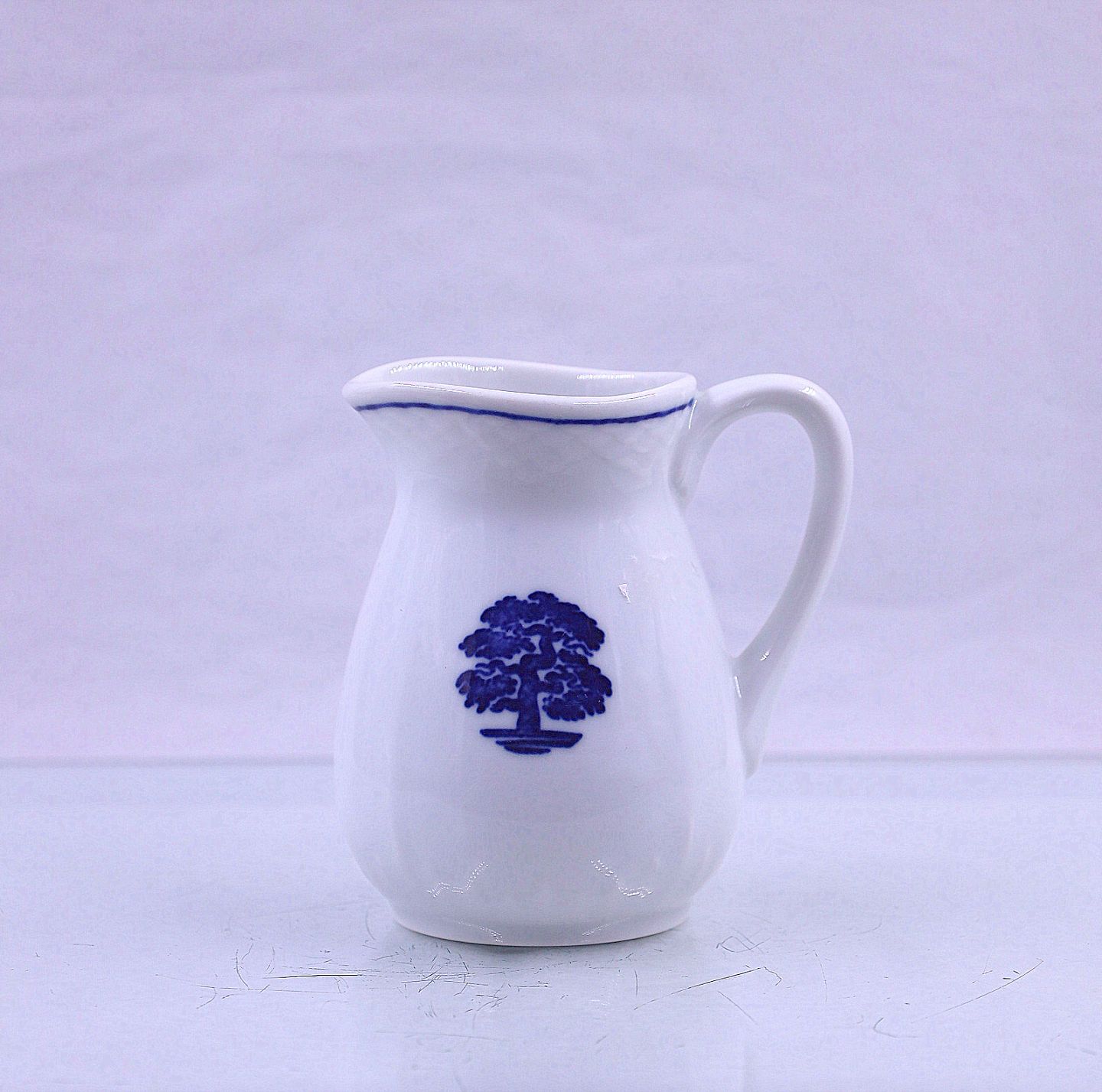 Bing & Grøndahl. Flødekande, nr. 1042. Flødekande af hotelporcelæn, dekoreret med stiliseret, blåt, egetræ.