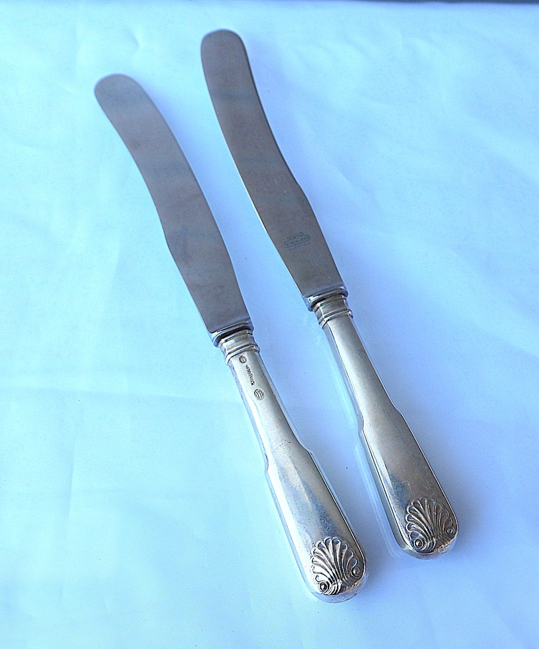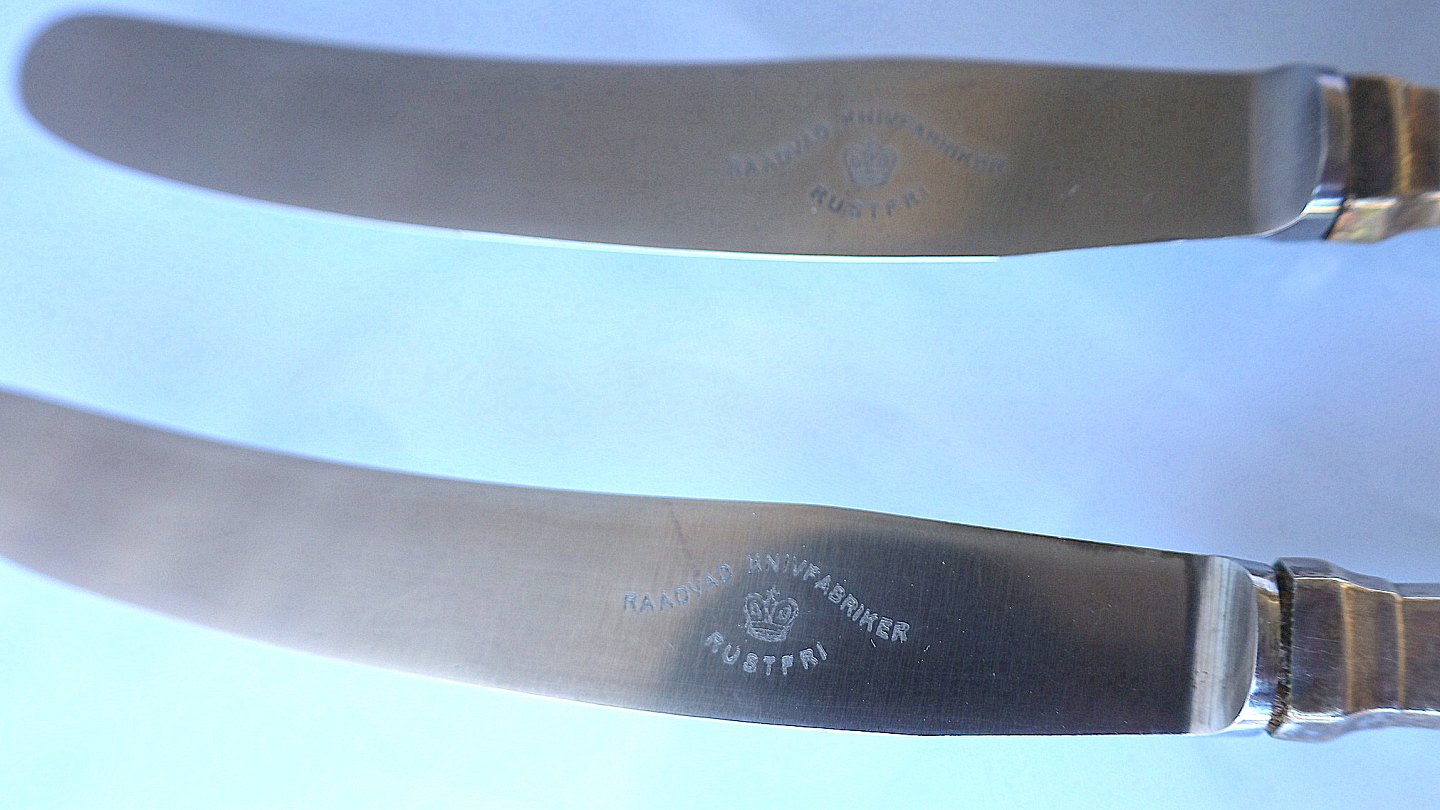 Smørreknive fra to forskellige sølvvarefabrikker.