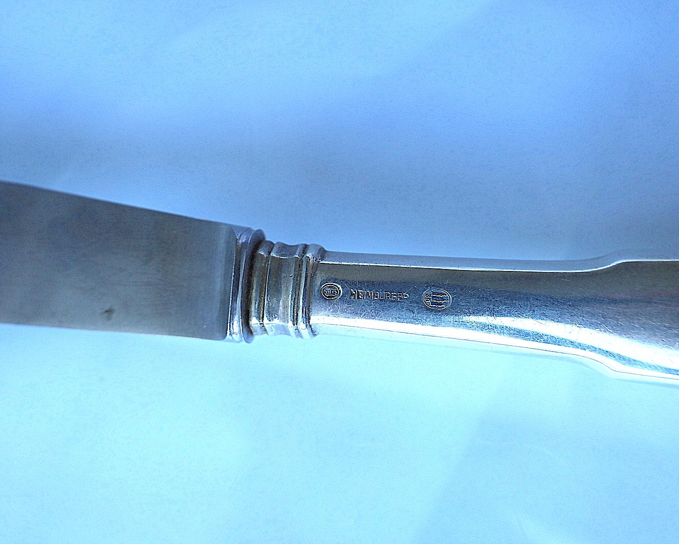 Knive med skæfte i tretårnet sølv og blad i stål.