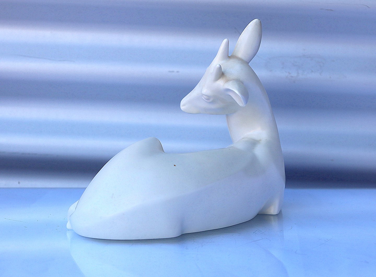 Bing & Grøndahl. Liggende hjort, nr. 2205. Figuren er udført i porcelæn med mat glasur.