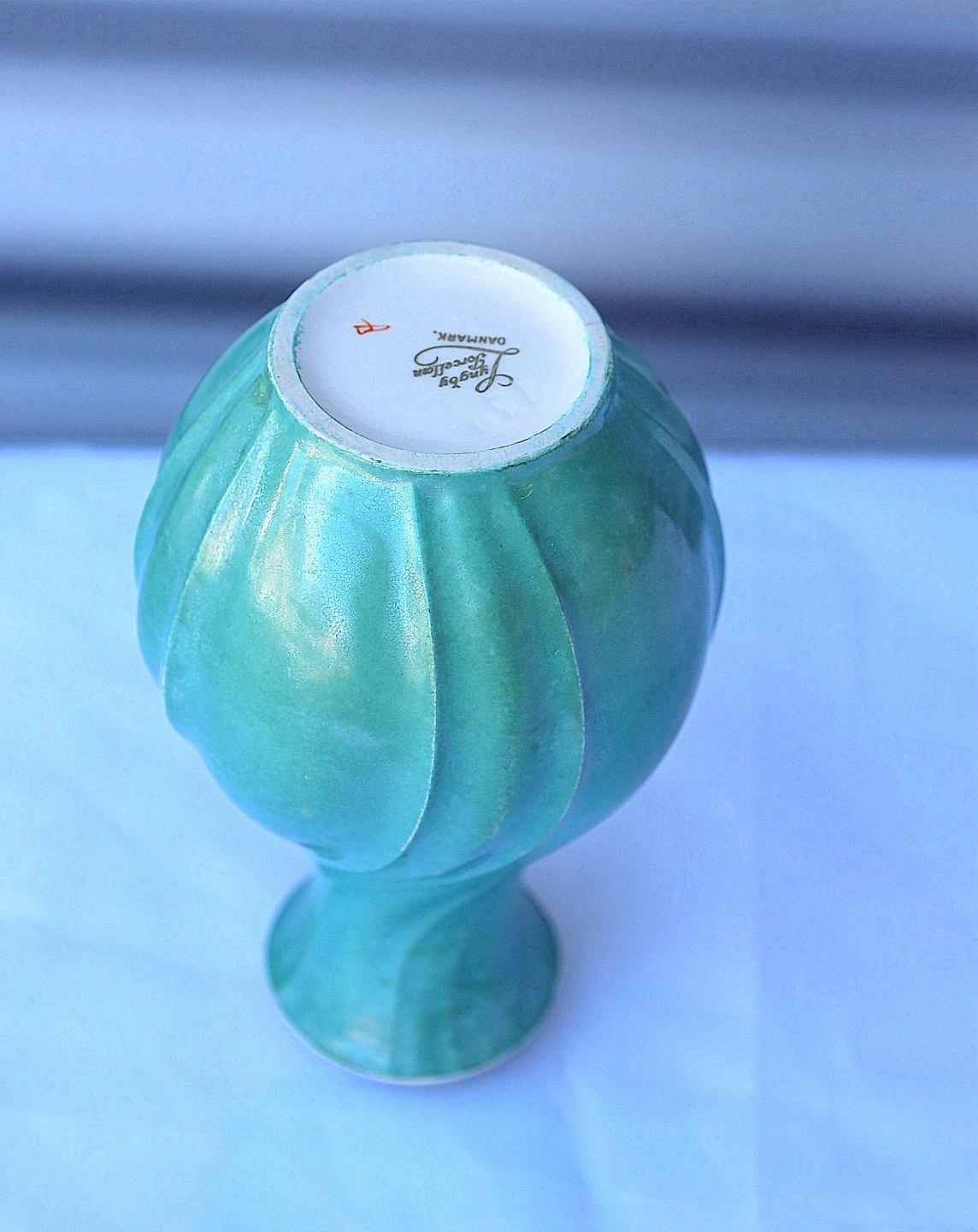 Lyngby Porcelæn. Svejfet vase i mintgrøn.