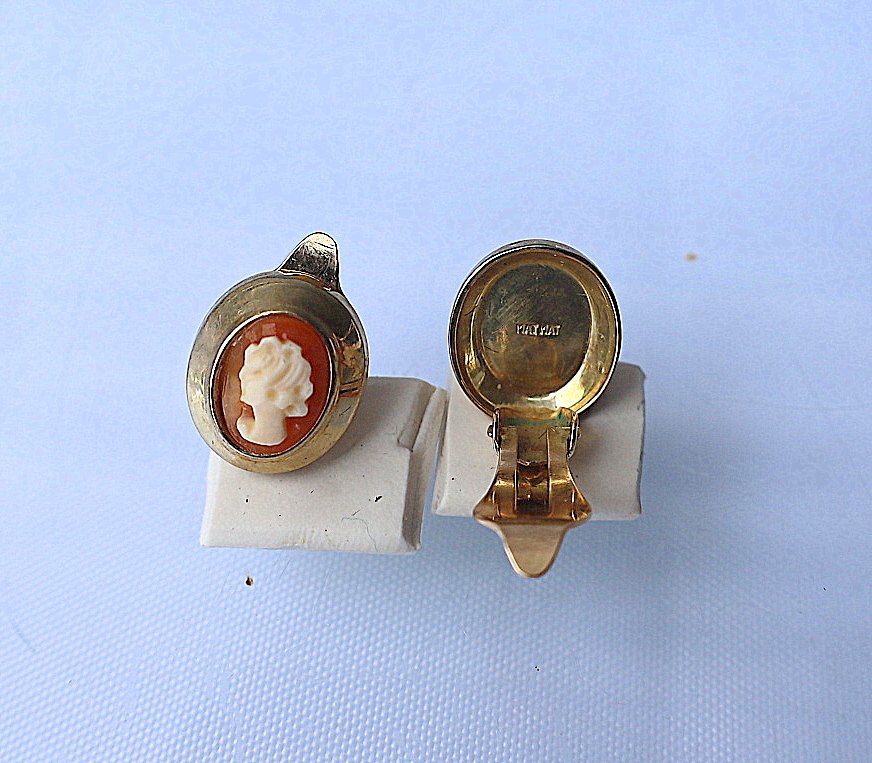 Guld, Came øreclips. Came øreclips, der er indfattet i guld, 585 guld. Cameen er udskåret af en 2-farvet konkylie.