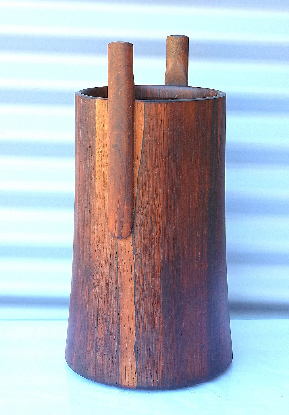 Jens Harald Quistgaard = IHQ. Isspand/ champagnekøler. Isspanden er lavet i Rio Palisander og fortet med plast og med påsatte hanke. Isspanden stammer fra bo efter tidligere direktør på Nissen og er formentlig en prototype.