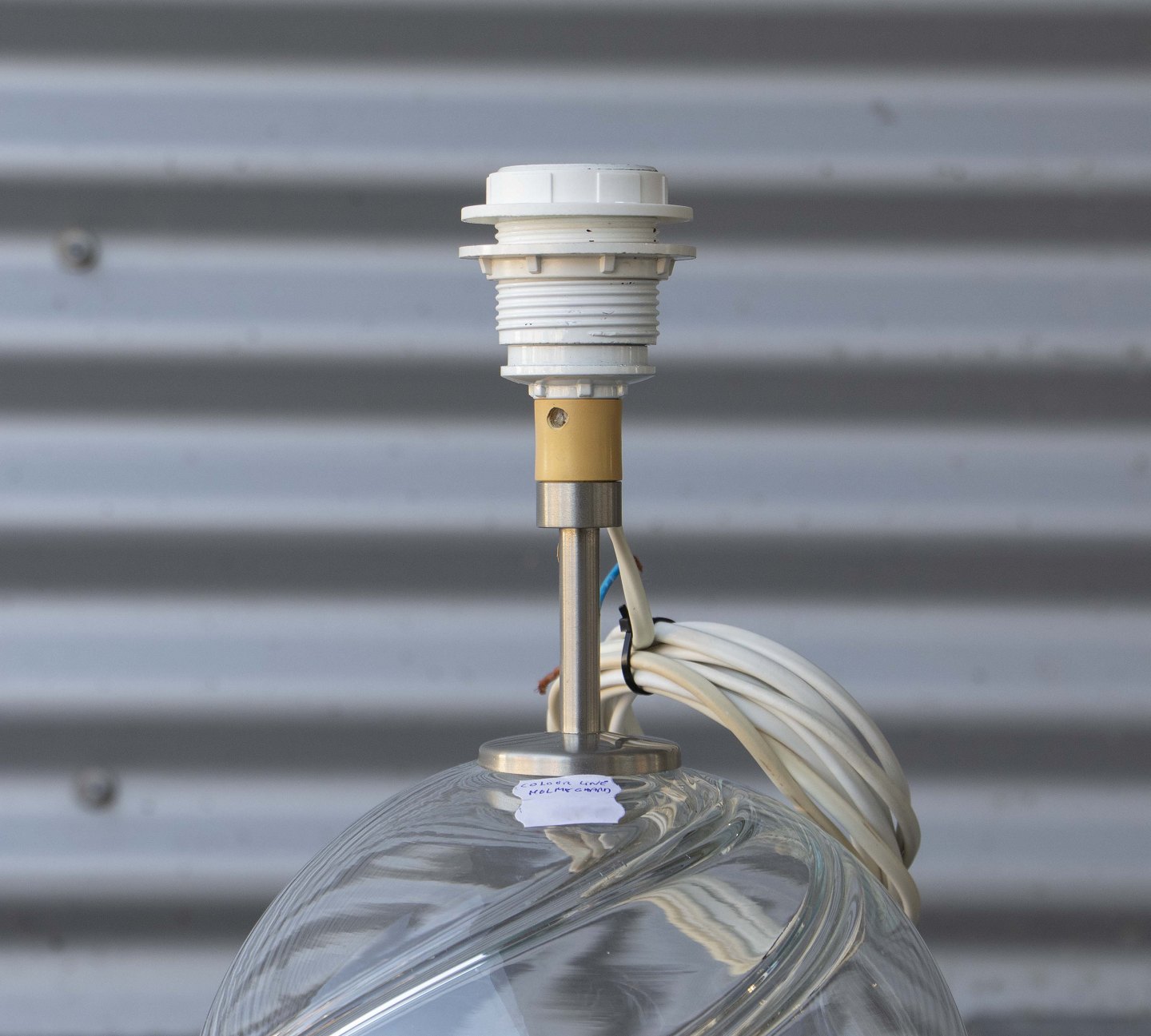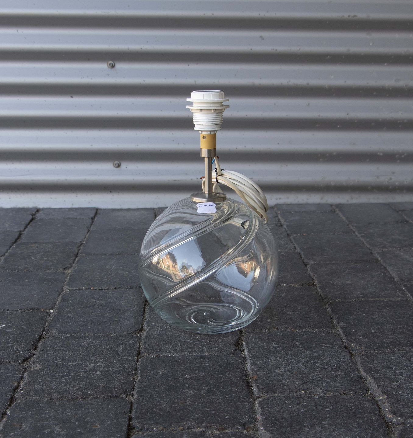 Lampefod i klart glas med snoet mønster.