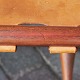 Skammel i teaktræ med sæde i cognacfarvet kernelæder