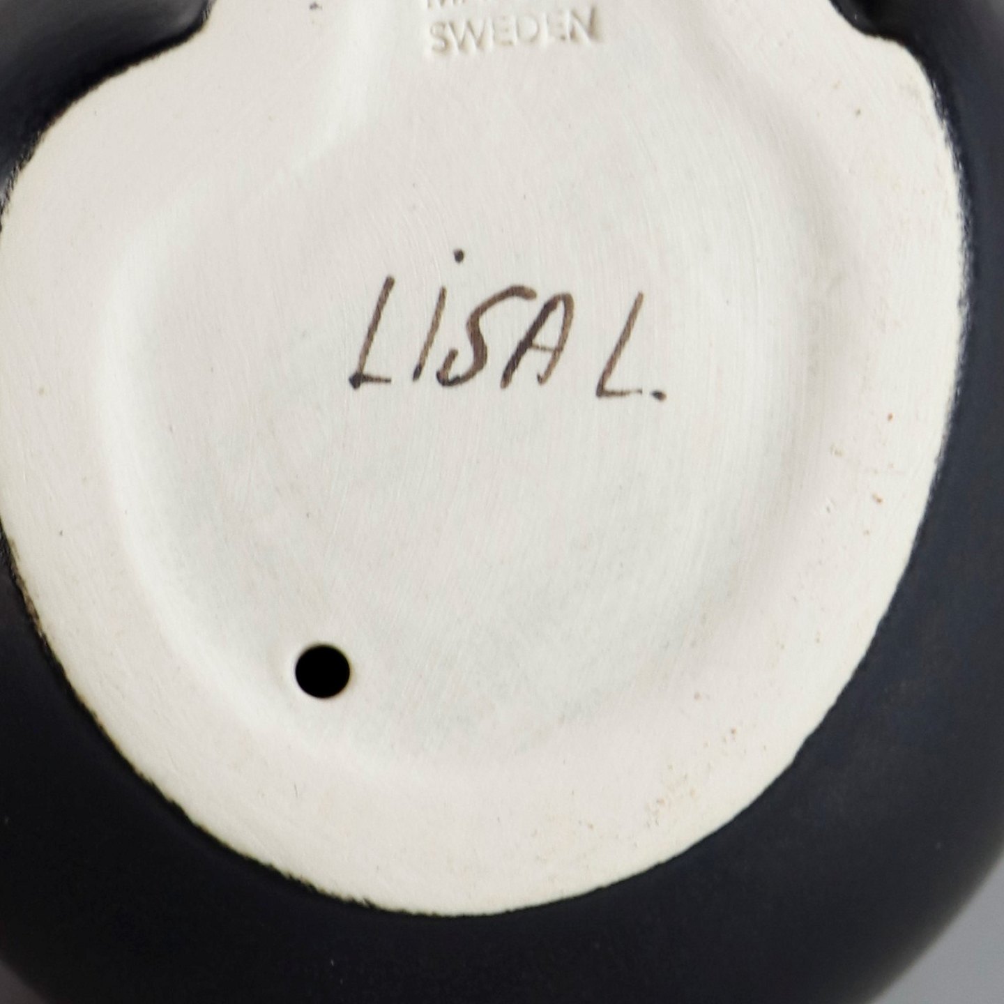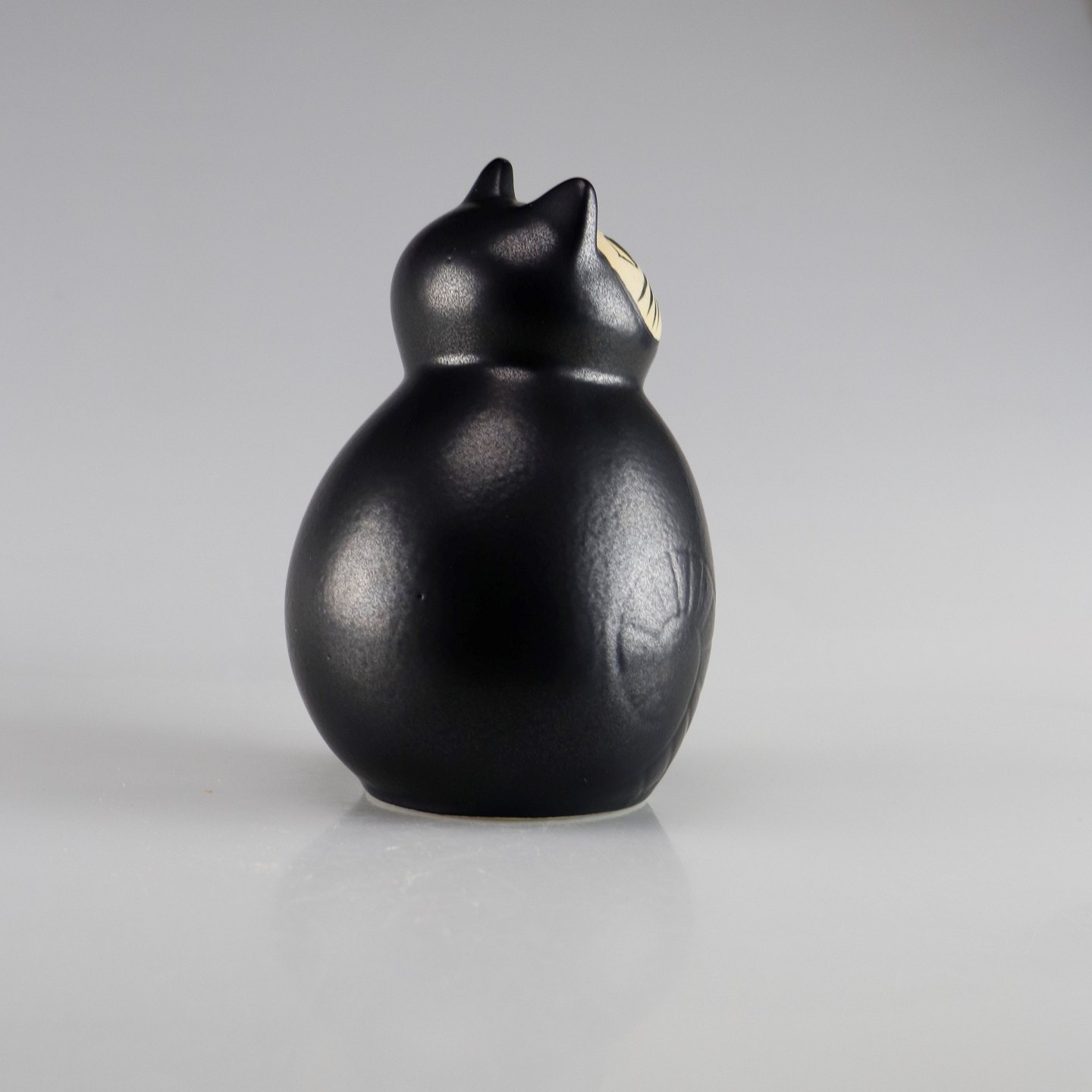 Porcelænsfigur af en sort kat med hvidt ansigt.