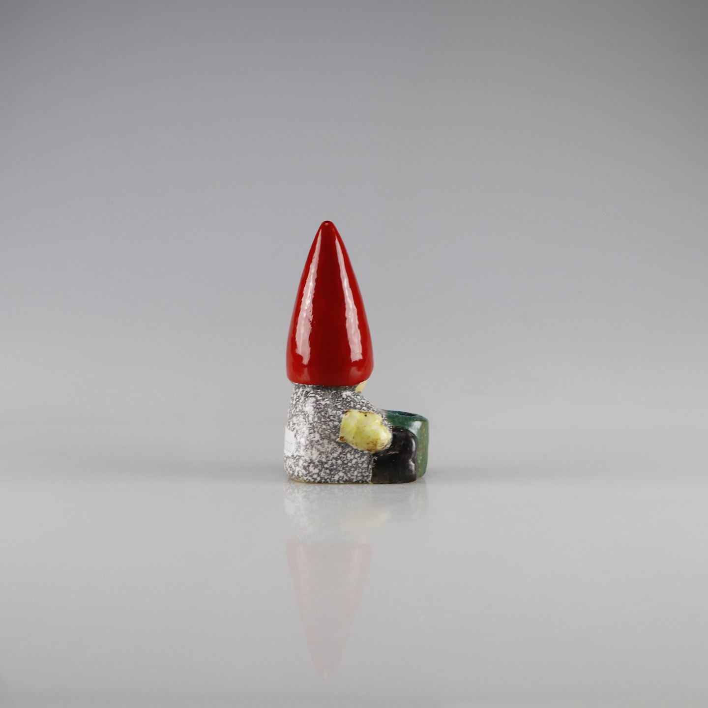 Stentøjsfigur af siddende nissedreng med stage
