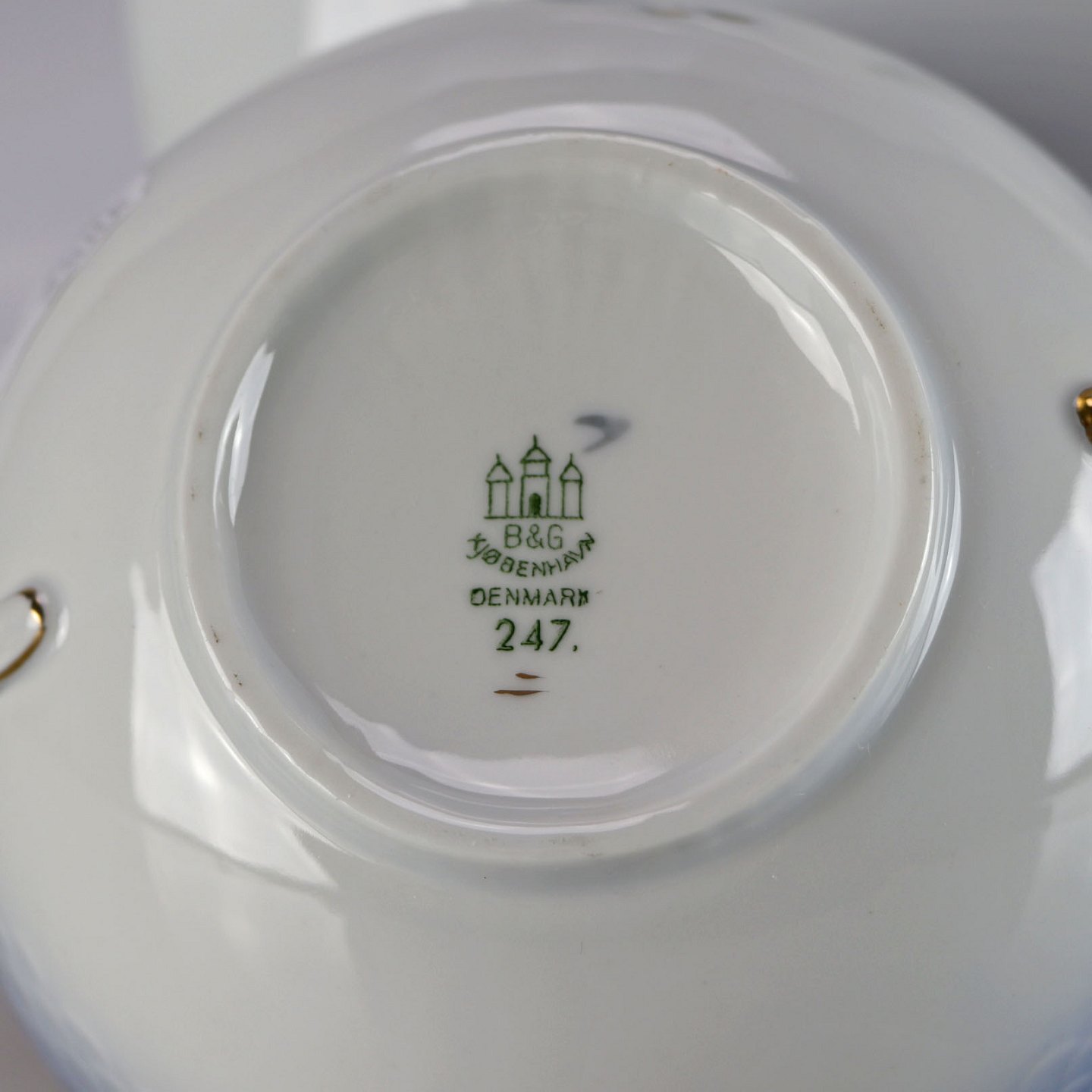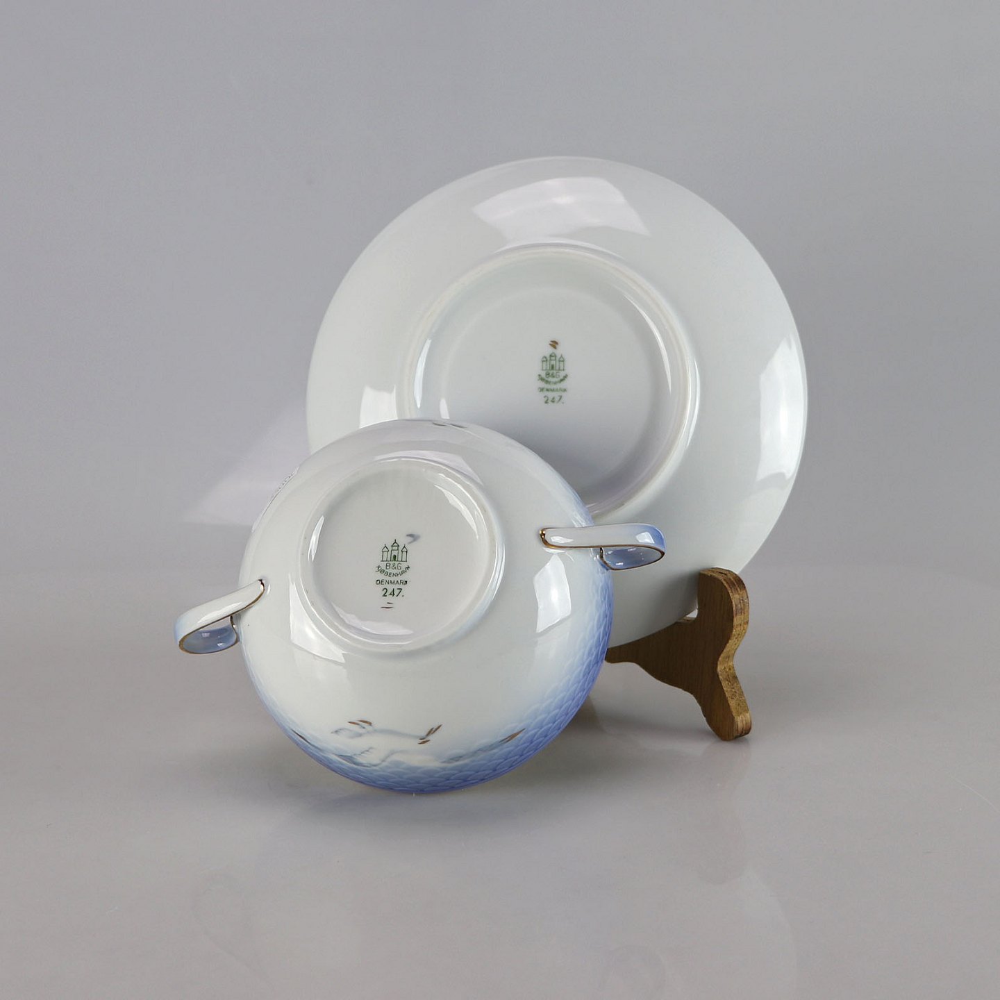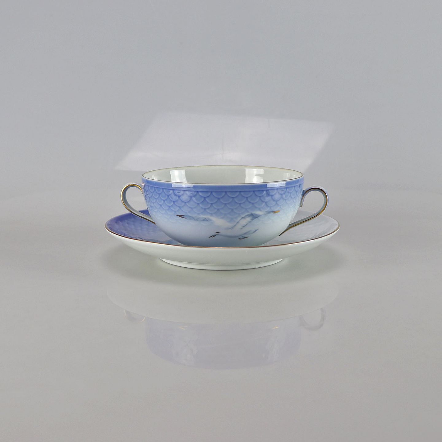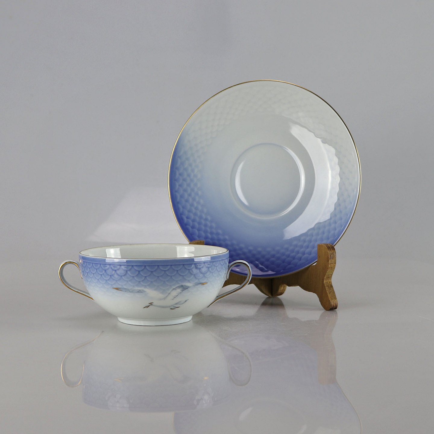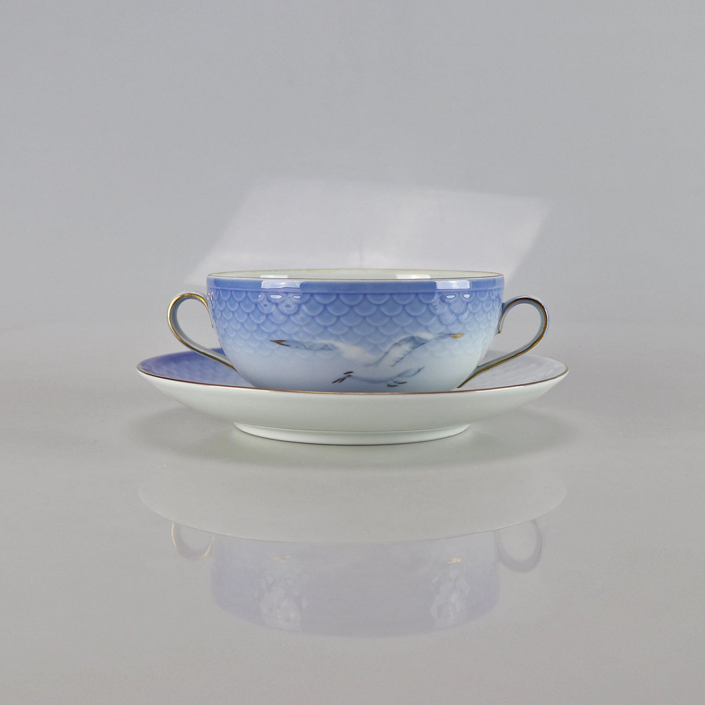 Bouillonkop med underkop fra Mågestellet med guldkant.