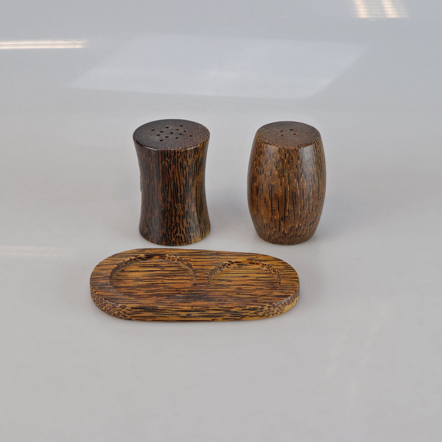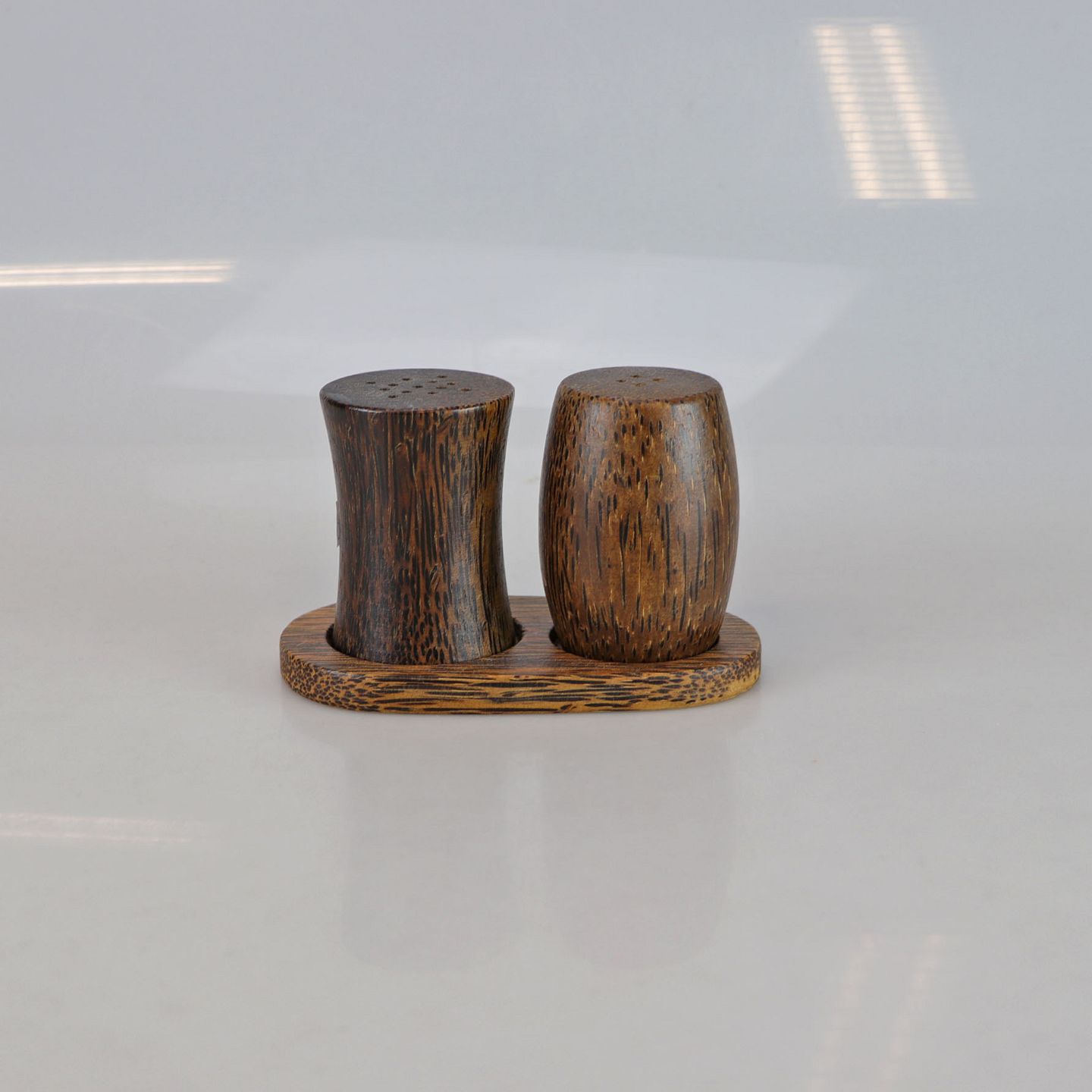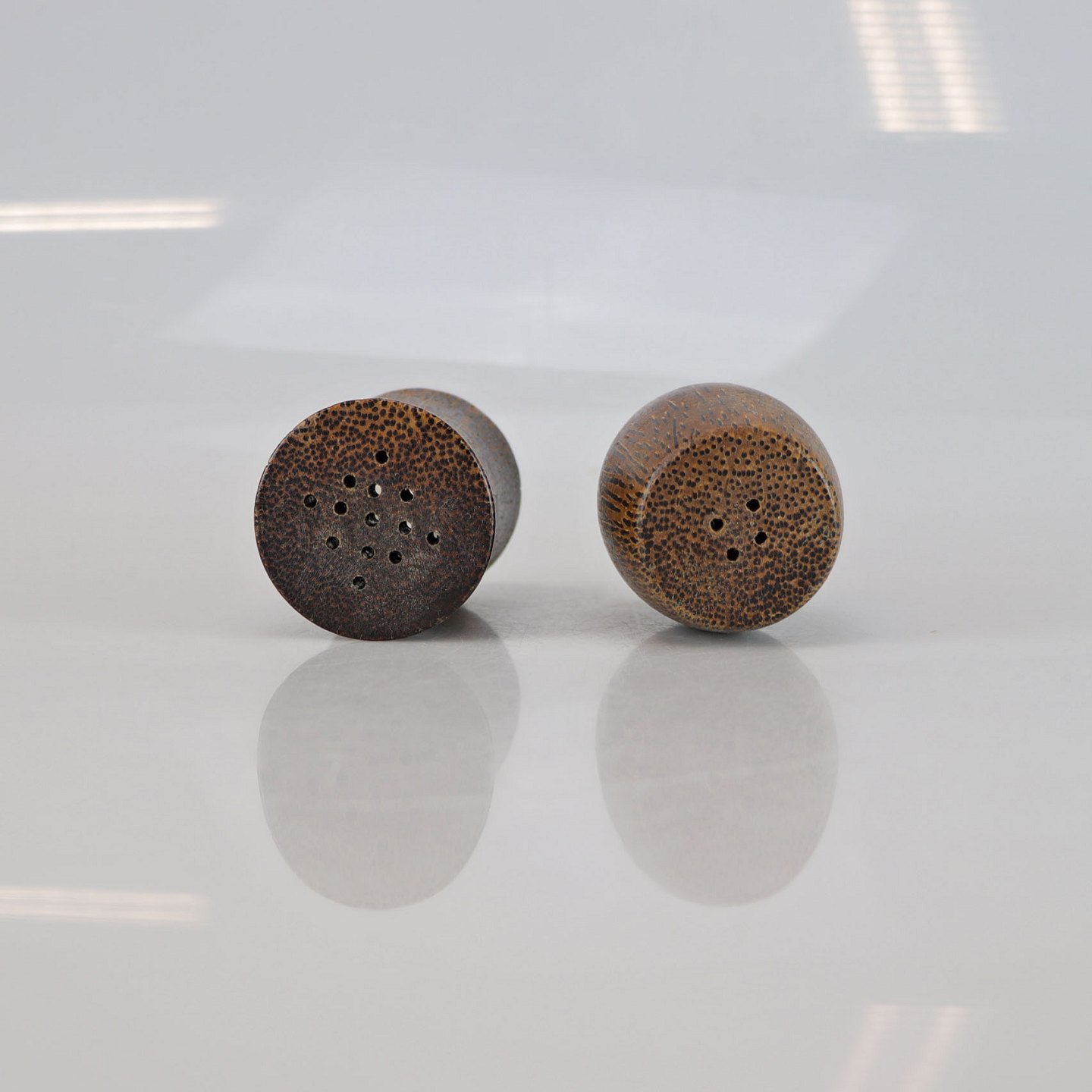 Saltbøsse og peberbøsse i wengetræ med spildbakke