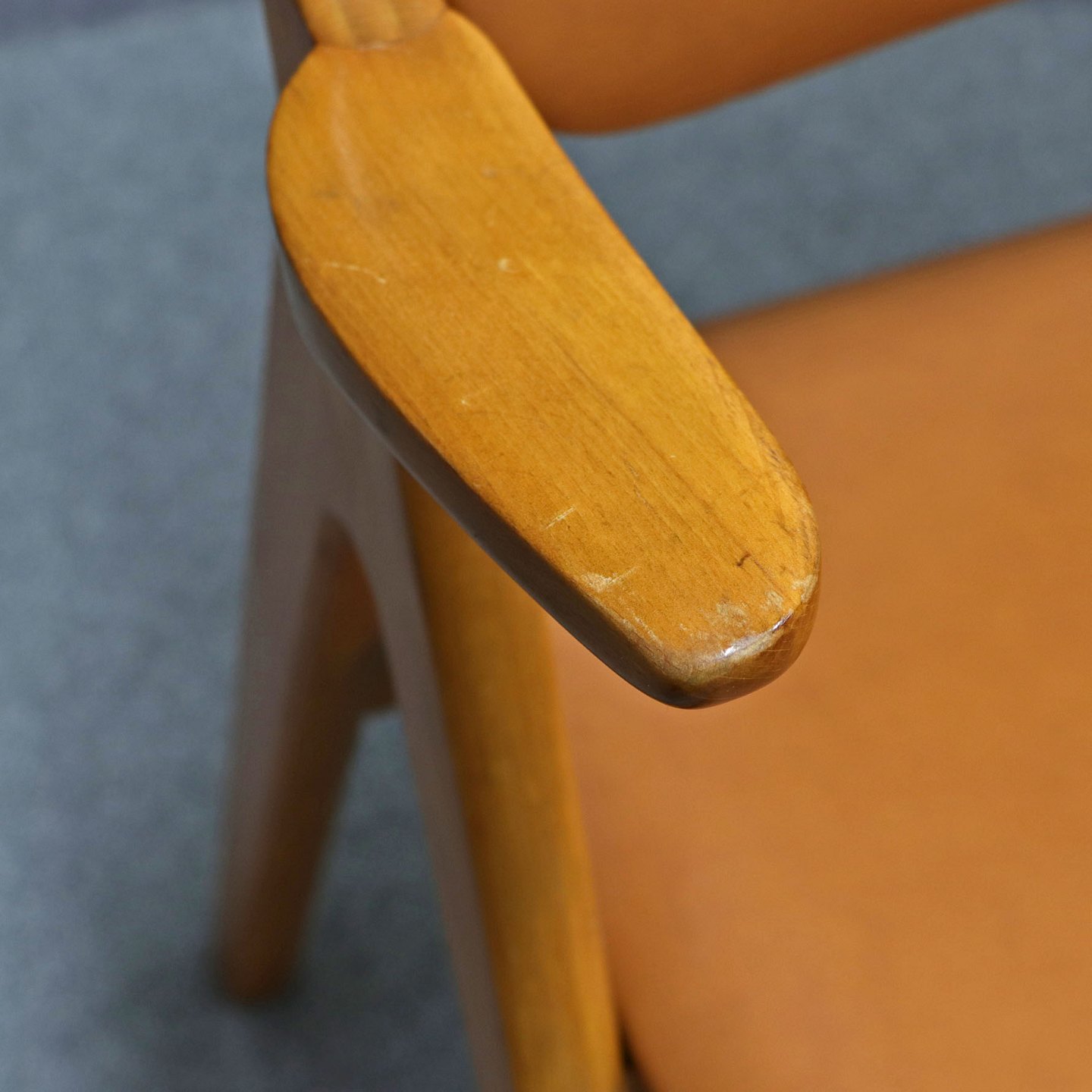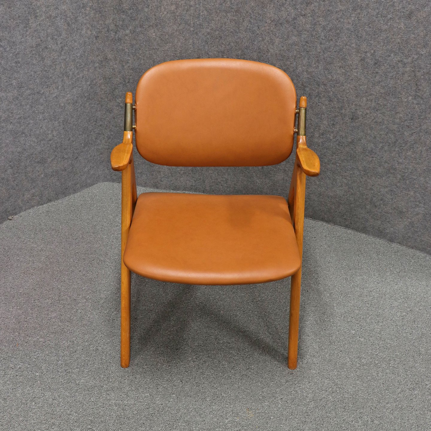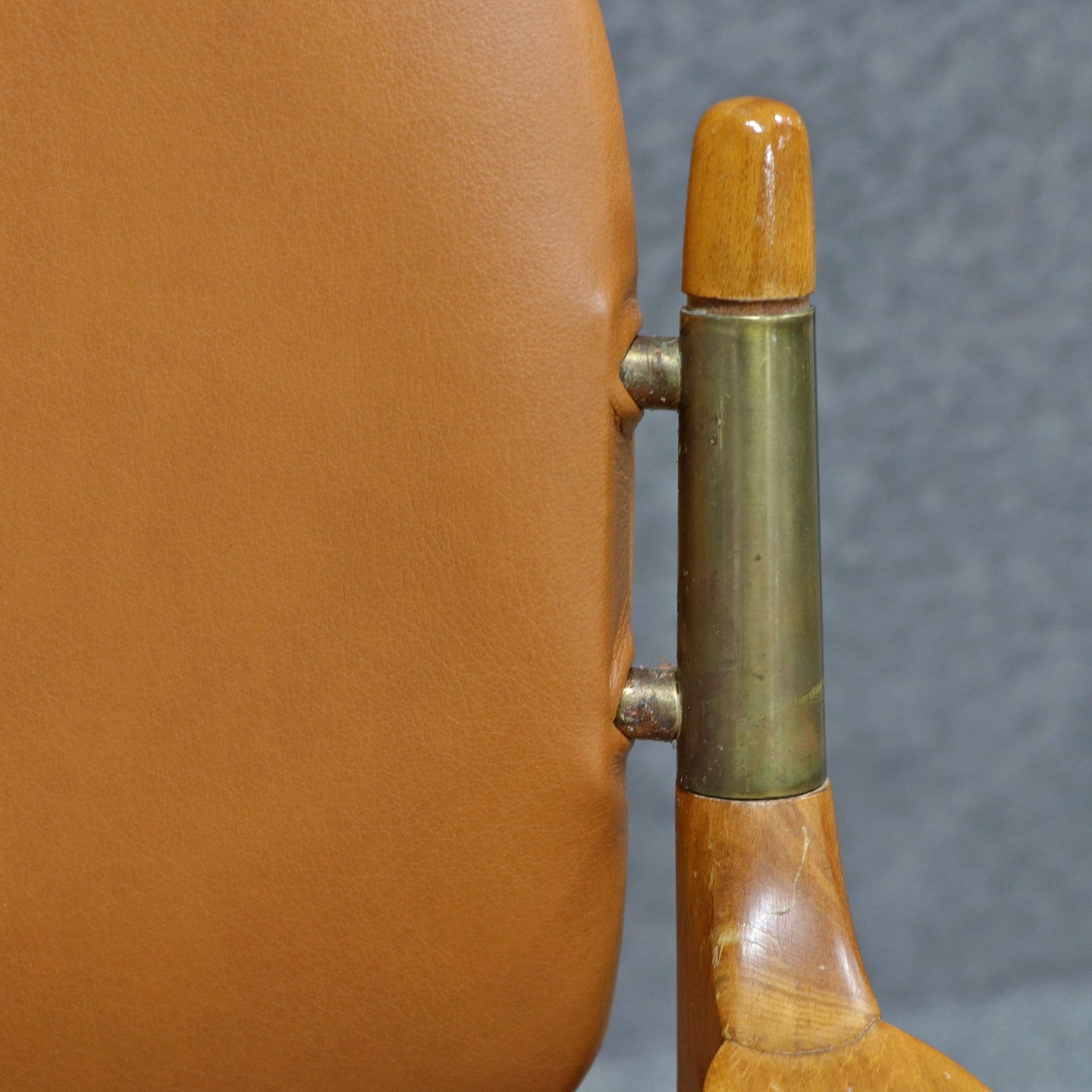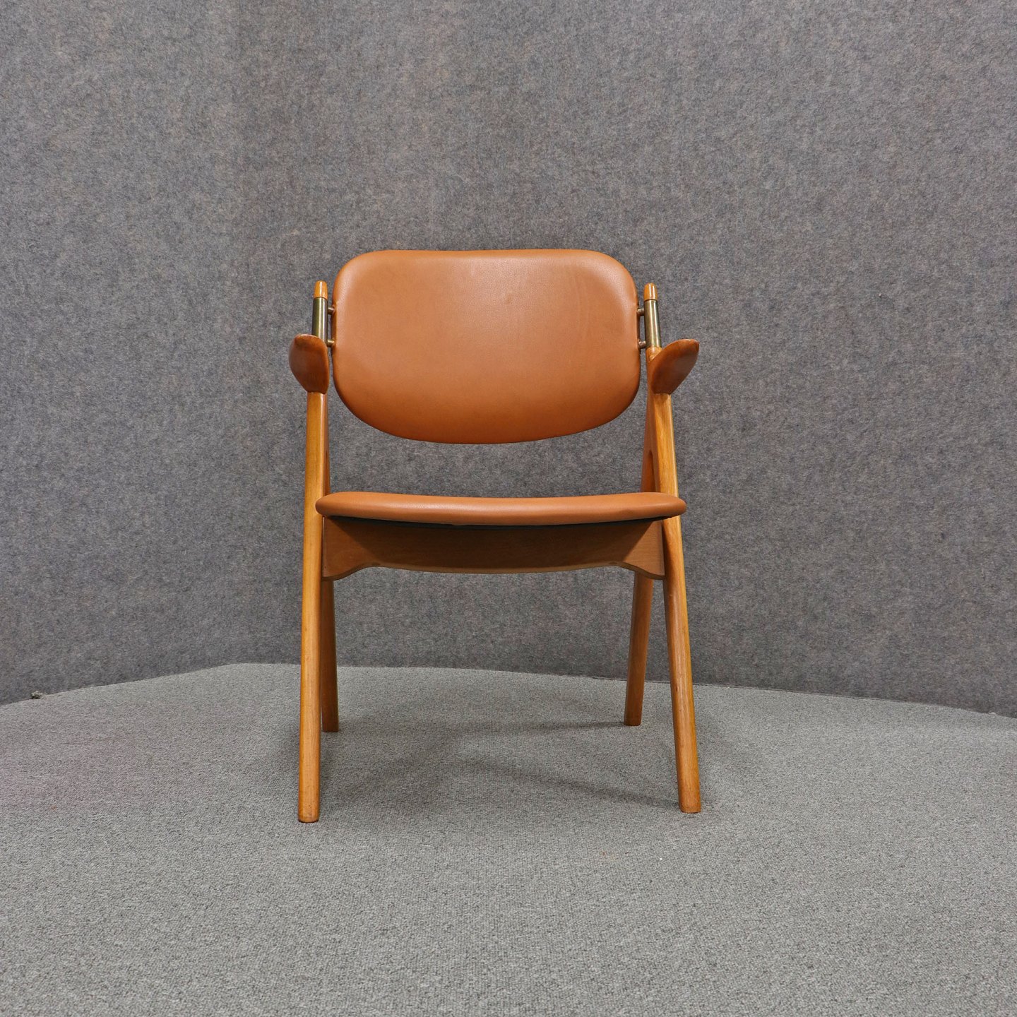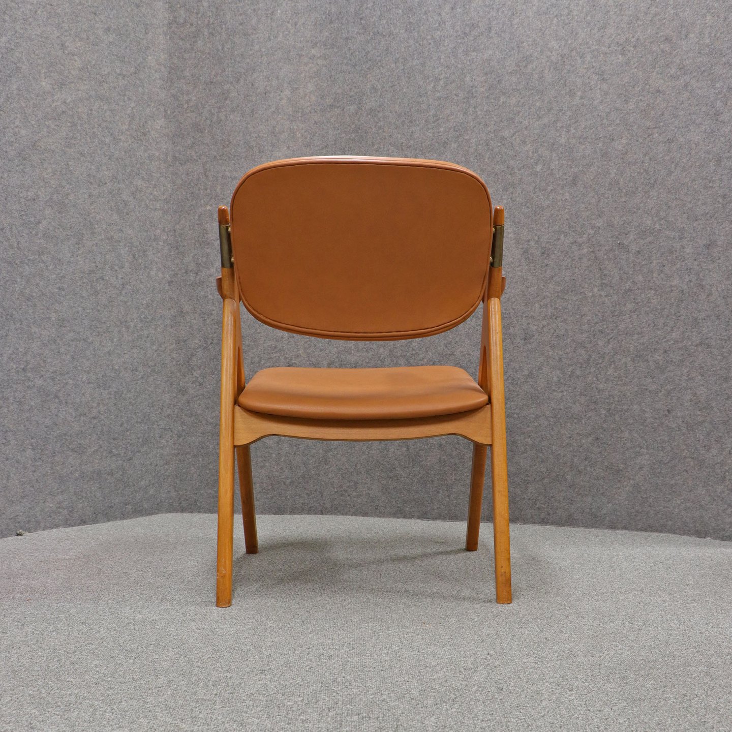 Sæde og ryglæn beklædt med cognacfarvet læder.
