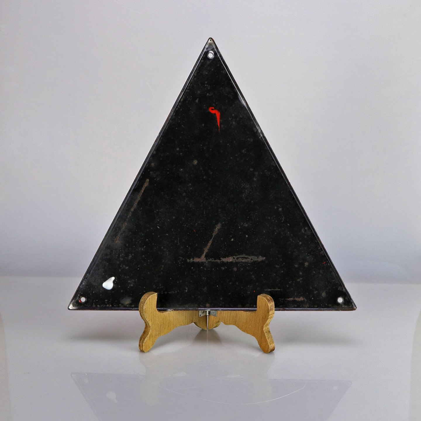 Rødt trekantet emalje skilt med teksten Almindeligt Dansk Vare- og Industrilotteri. Autoriseret Leverandør