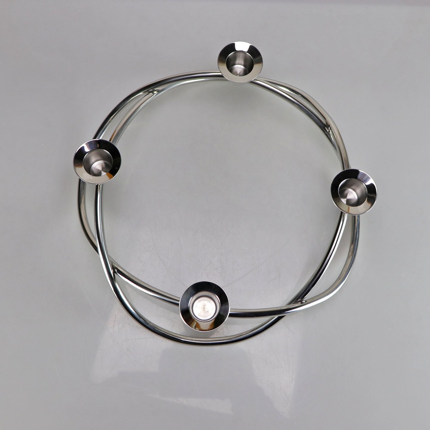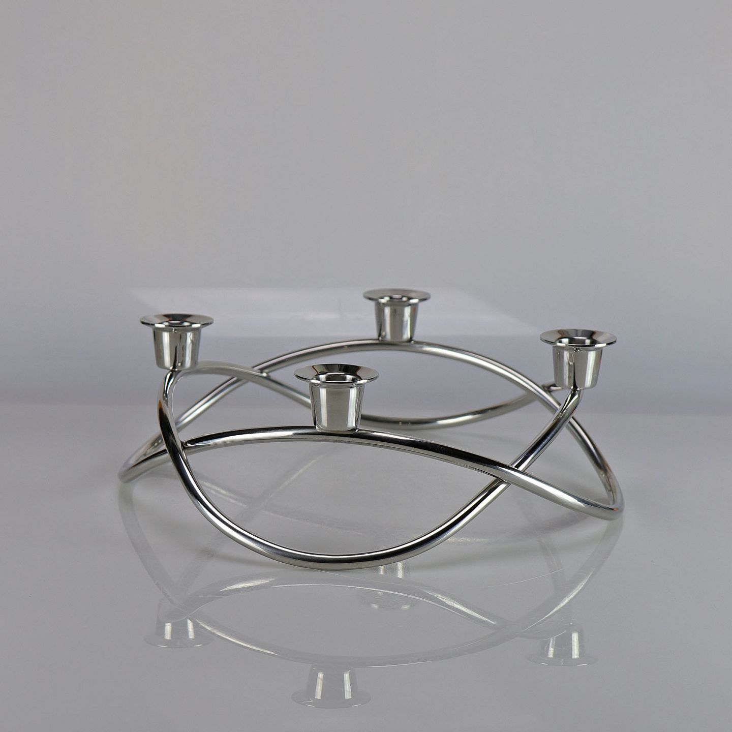 4-armet lysestage i glaspoleret rustfrit stål