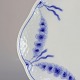 Kagefad i hvidt porcelæn med skelform og motiv af guirlander med blå blomster