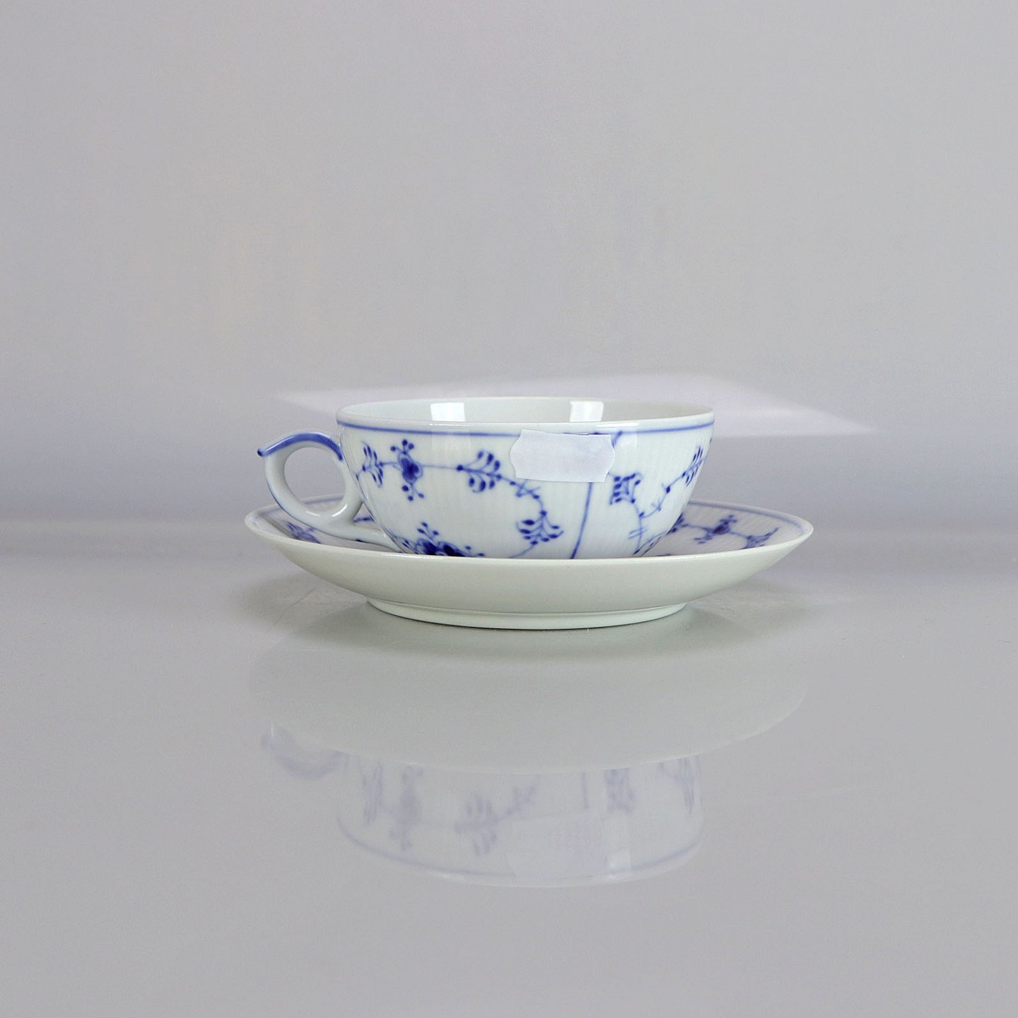 Royal Copenhagen kop med underkop Musselmalet Riflet