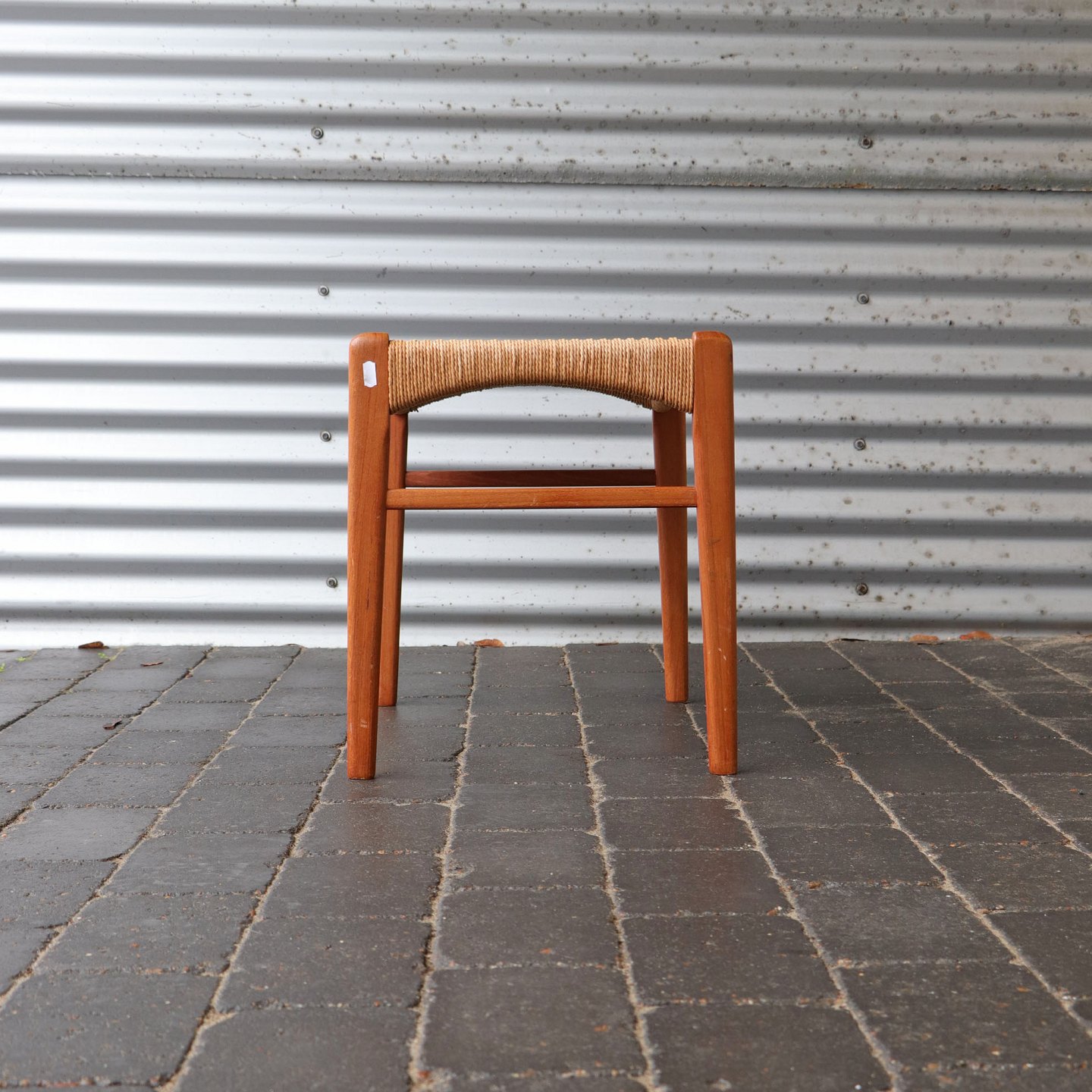 Skammel med papirgarnsflet og stel i eg
