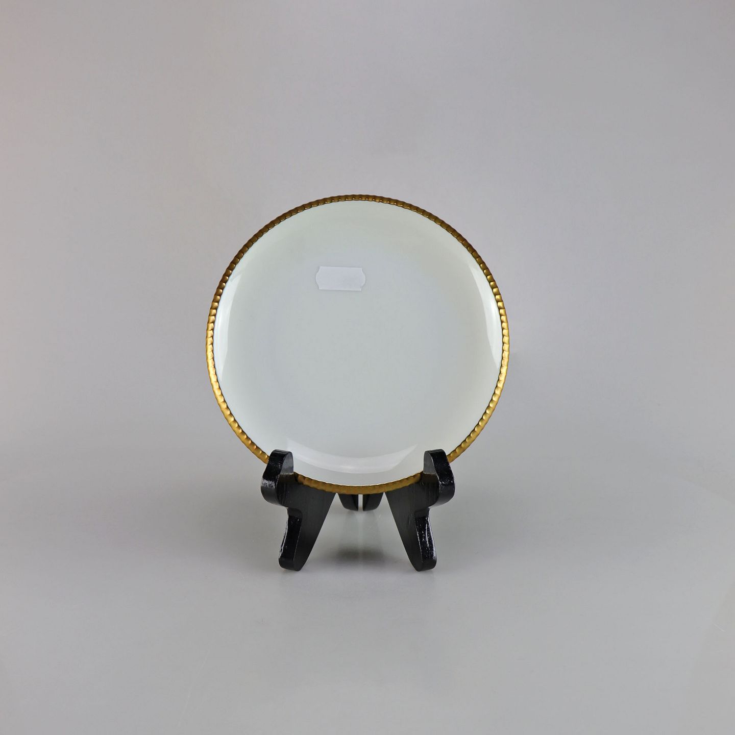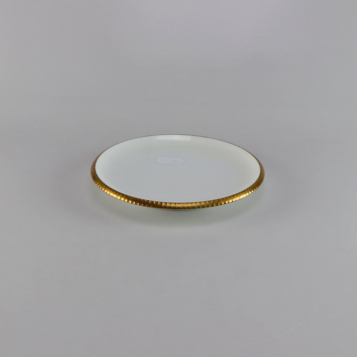 Tallerken i glat hvidt porcelæn med gylden kant
