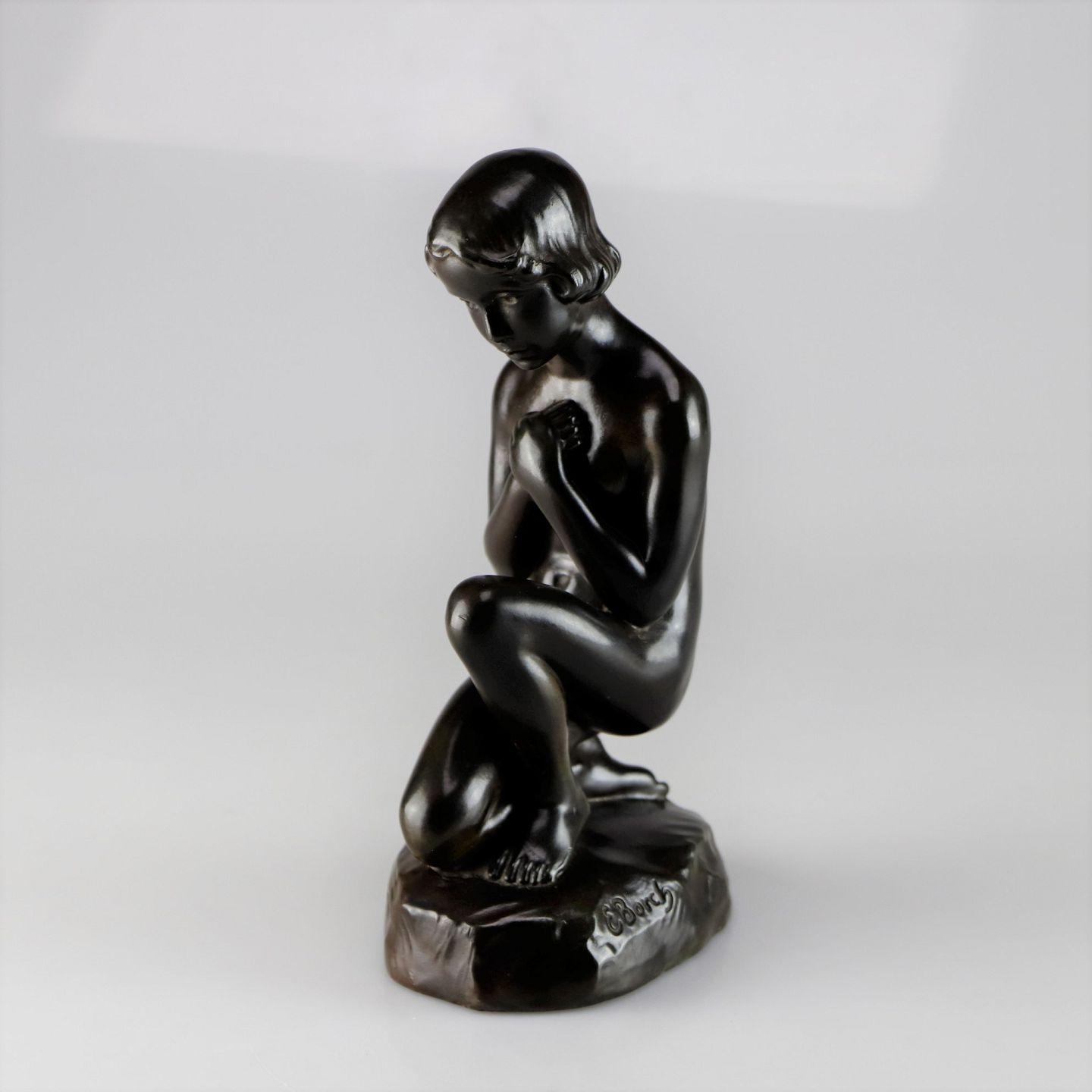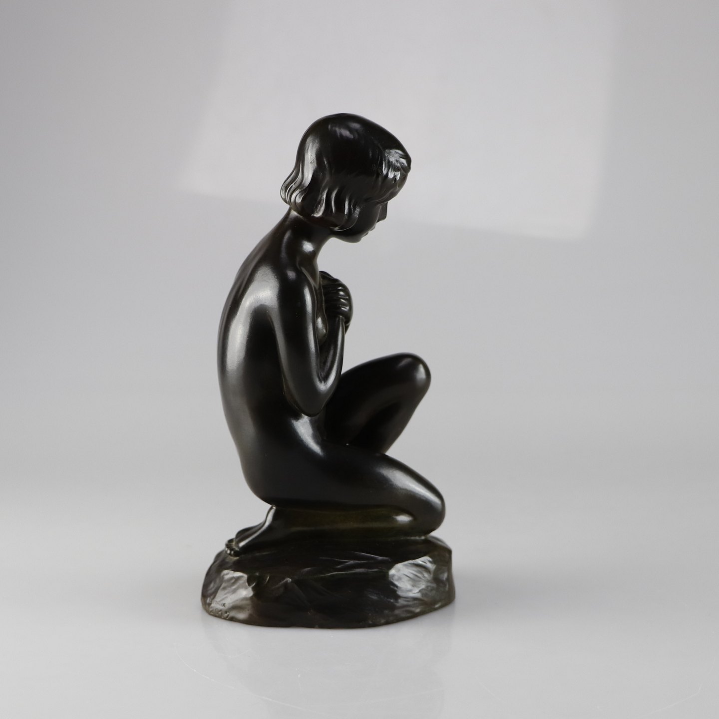 Figuren forestiller en nøgen knælende kvinde