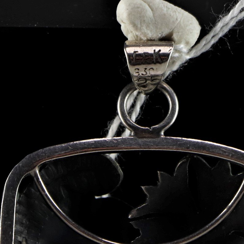 Rektangulært vedhæng i sølv med motiv af fugle, blomster og blade