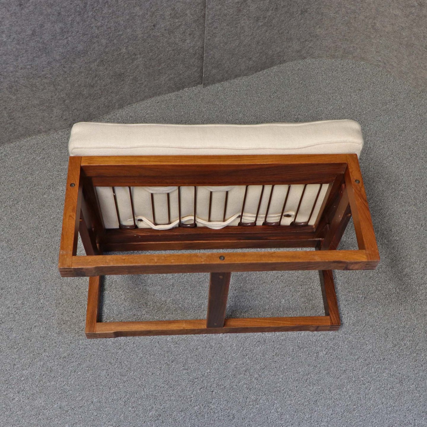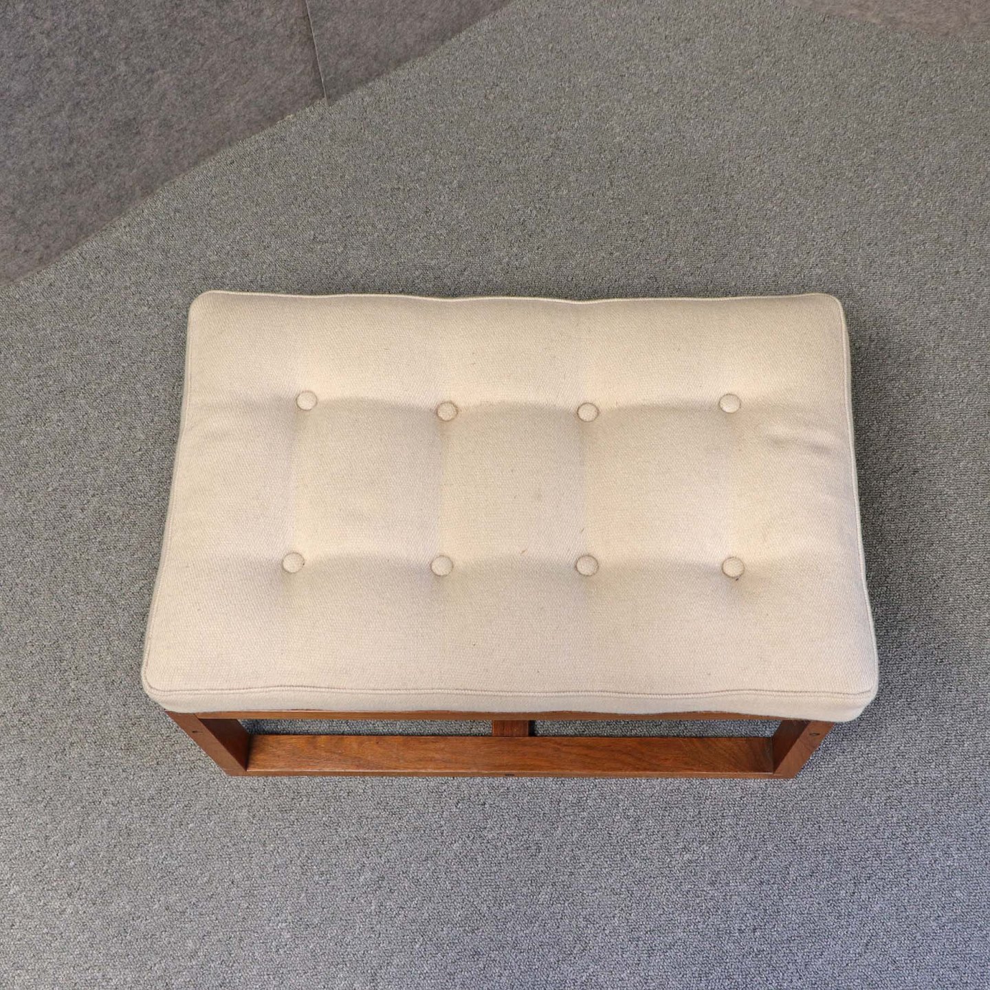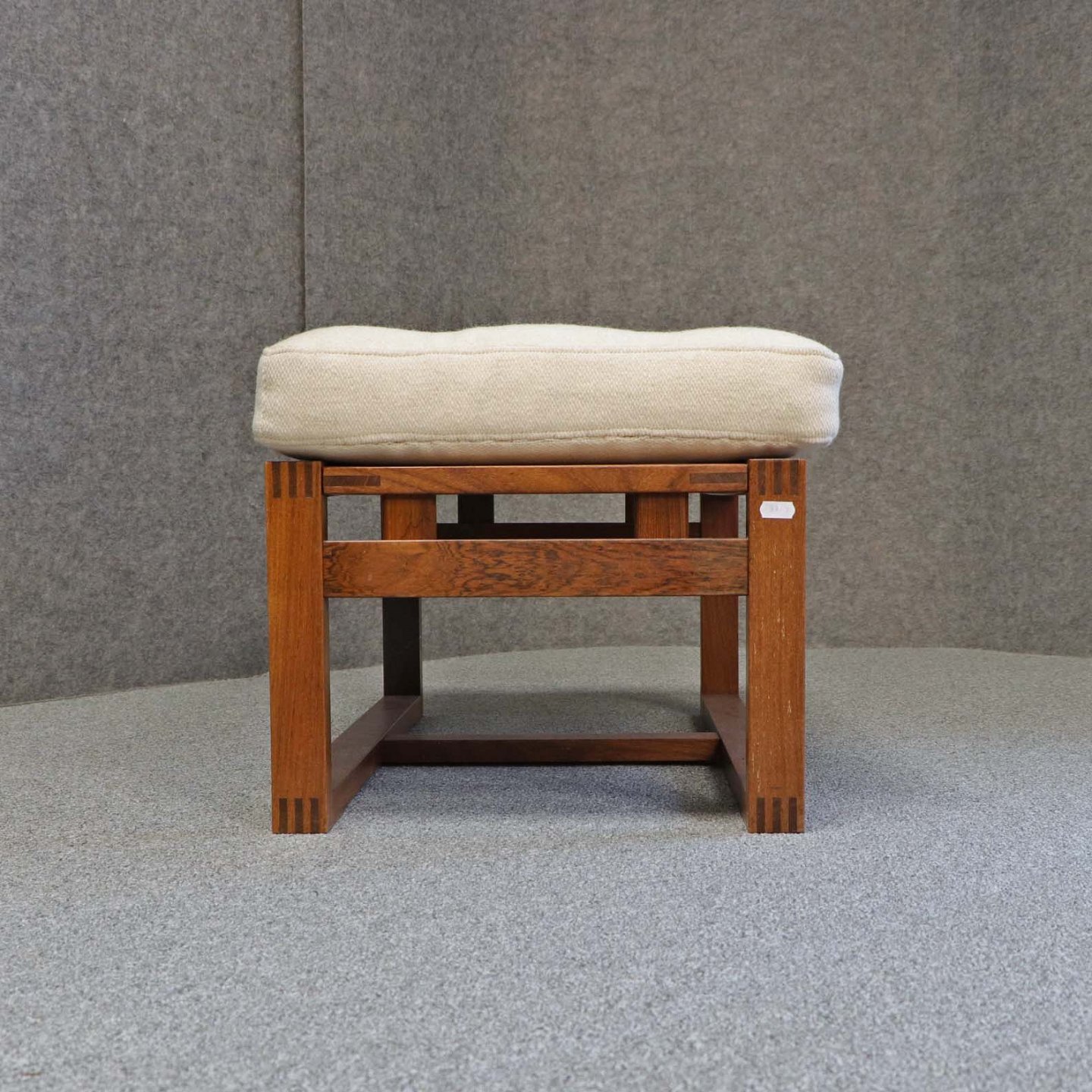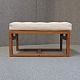 Skammel stel i teak med polstret hynde med rådhvid uldbetræk