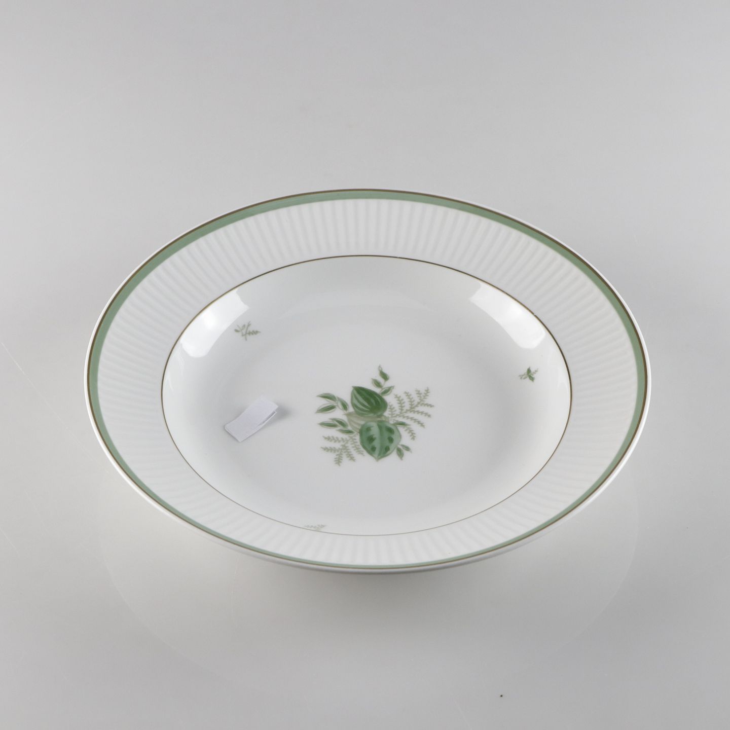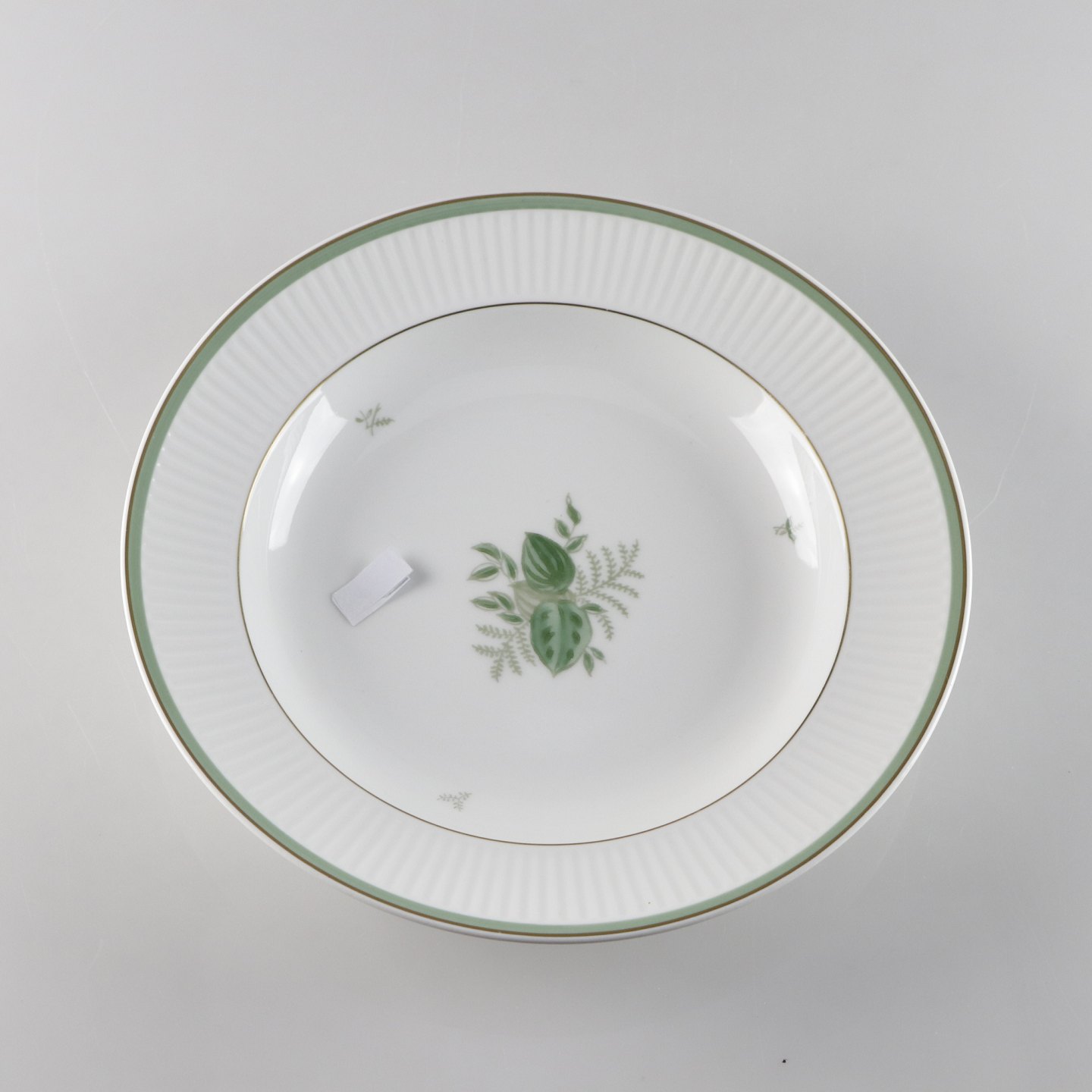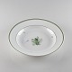 Riflet hvid porcelæn med dekoration af grønne blomster samt grønt bånd og guldkant