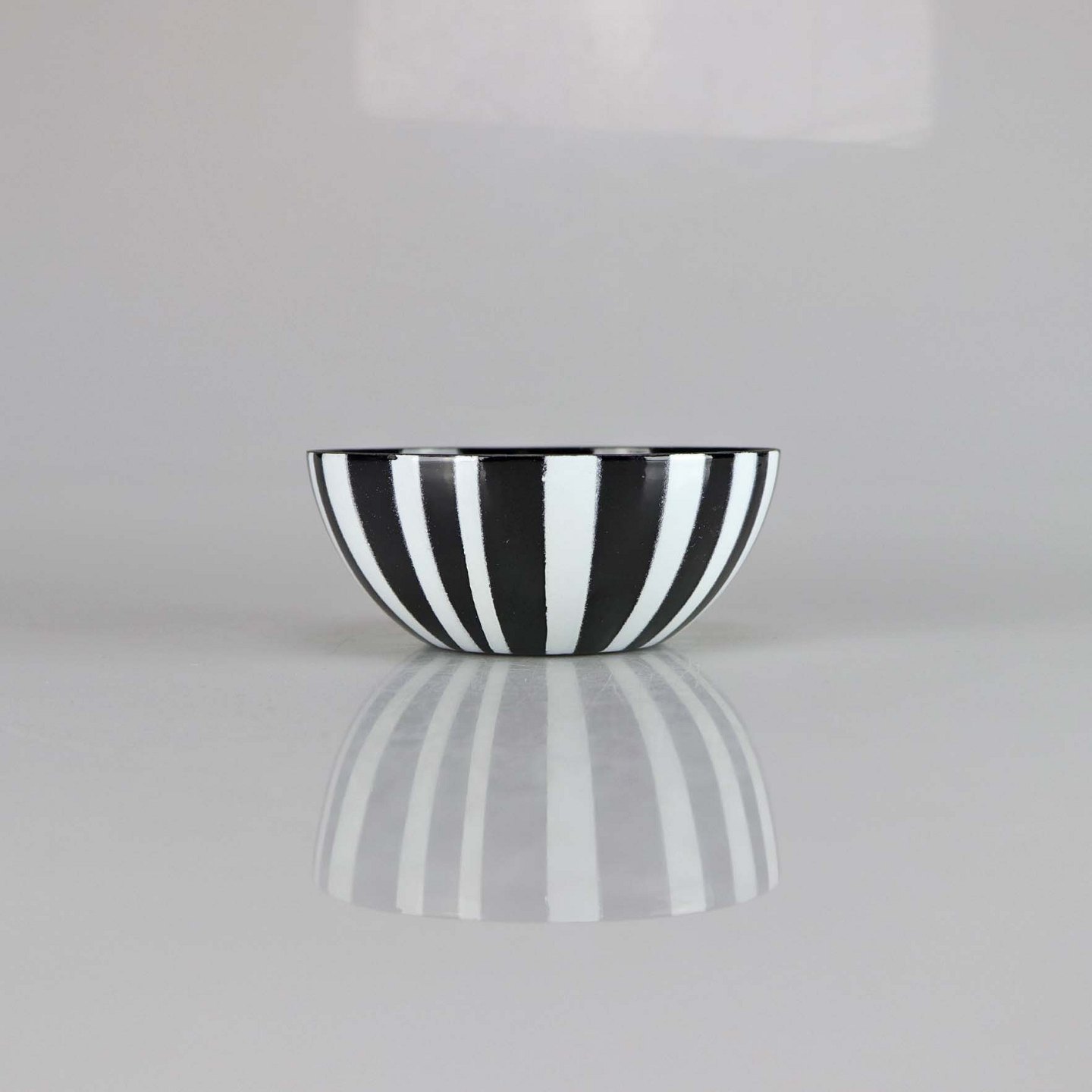 Original Cathrineholm emaljeret skål fra serien Stripes i sort og hvid
