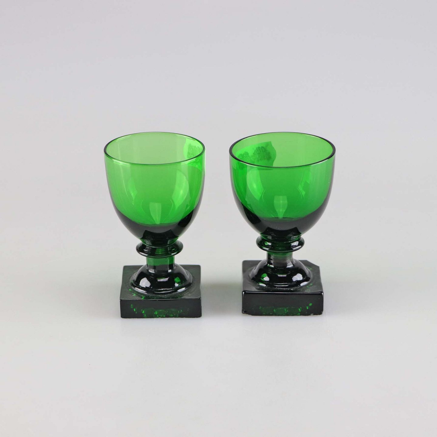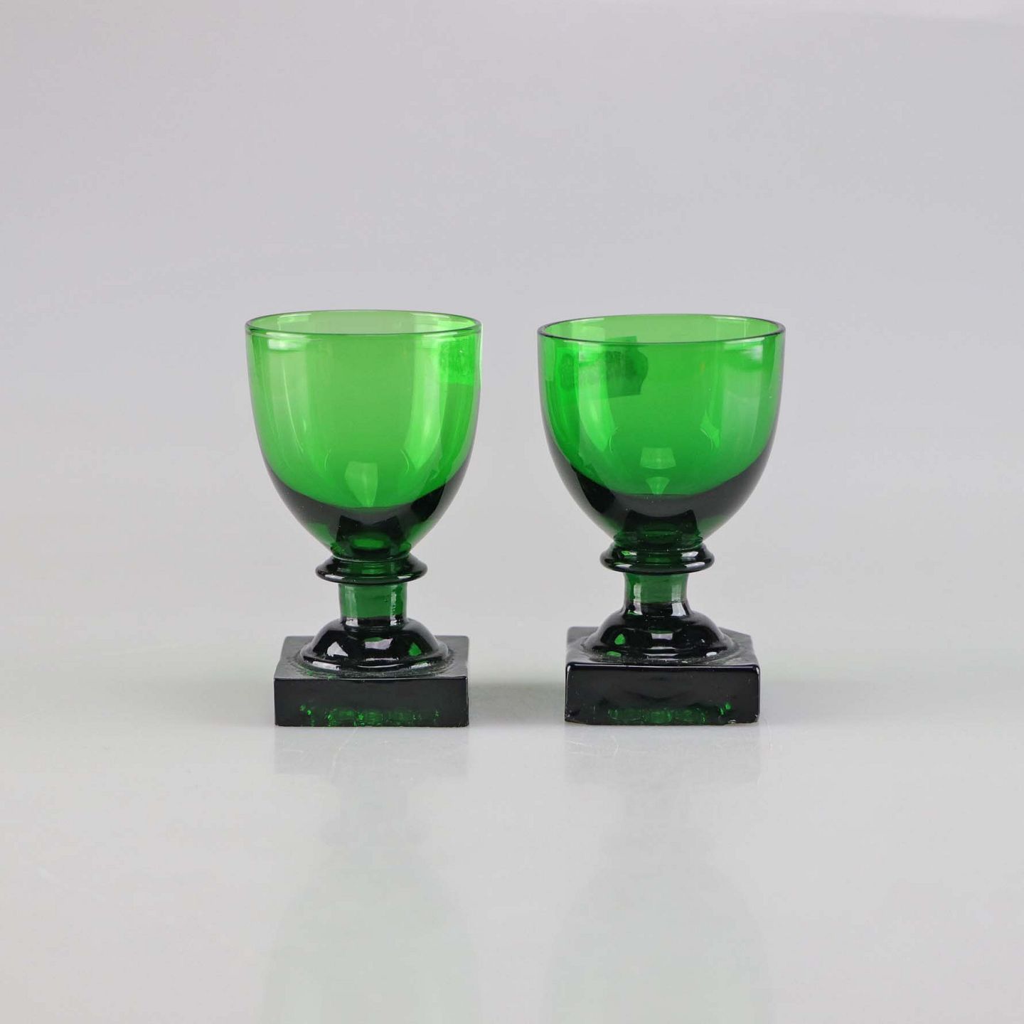 Gorm den gamle glas - Et sæt af 2 styk portvinsglas i grøn med firkantet fod