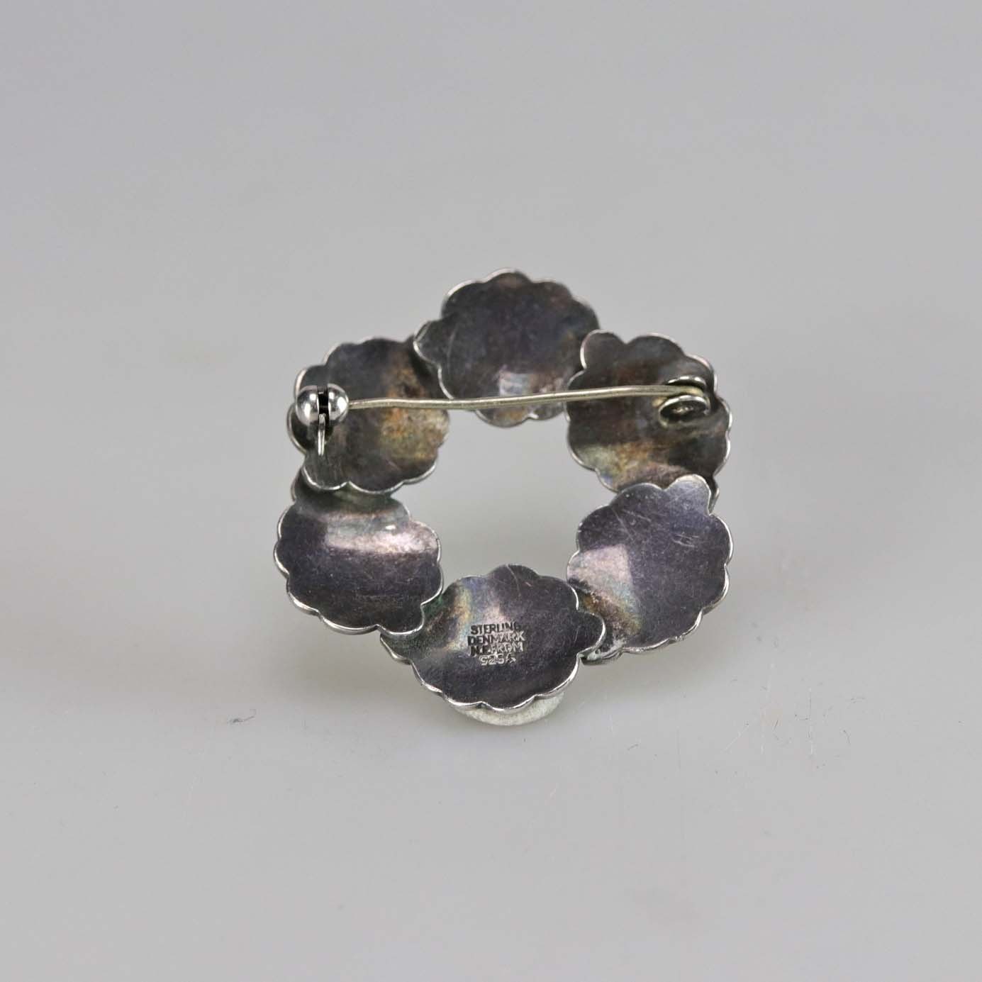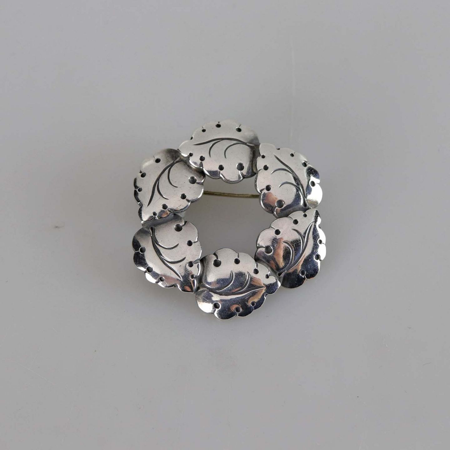 Vintage broche i sterling sølv med motiv af krans med blade