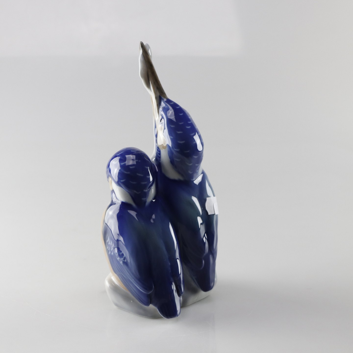 Figur i porcelæn af to isfugle i blålige farver