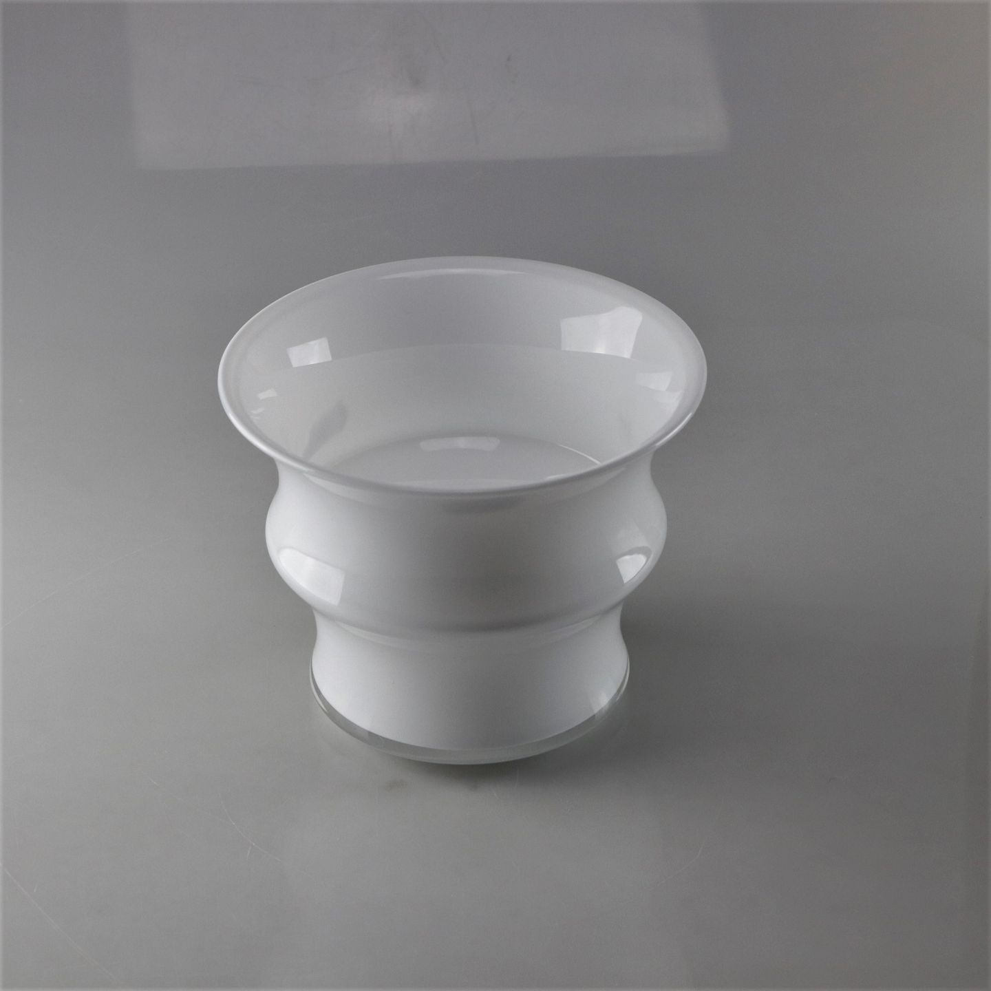 Opalhvid potteskjuler i mundblæst glas af Anja Kjær. Størrelse Mellem