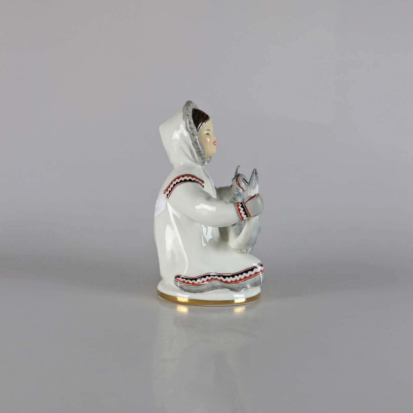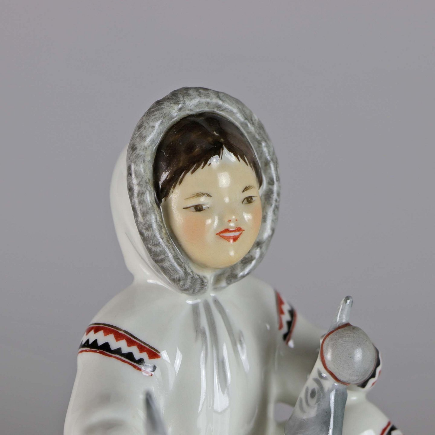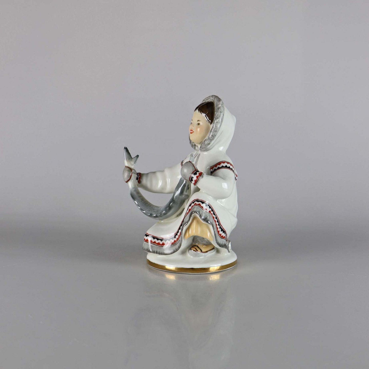 Russisk porcelænsfigur af en pige med fisk