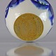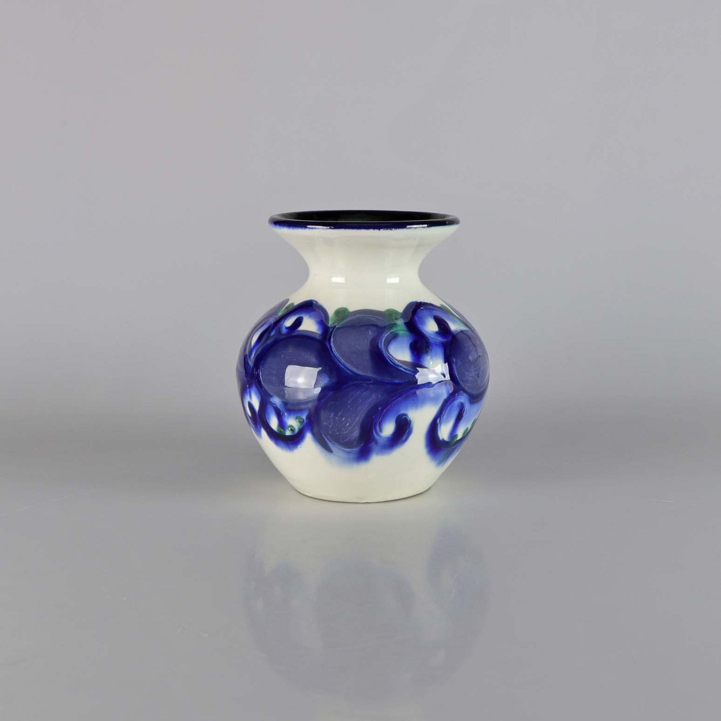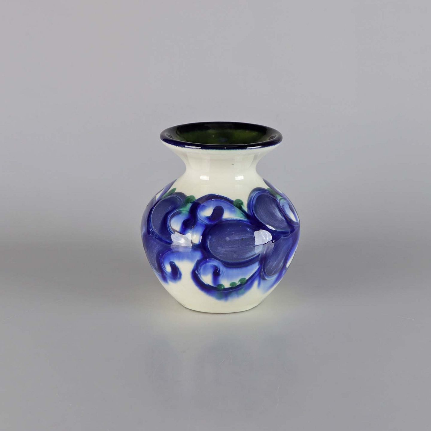 Vase med hvidt glasur og blåt abstrakt mønster, grøn glasur indvendigt