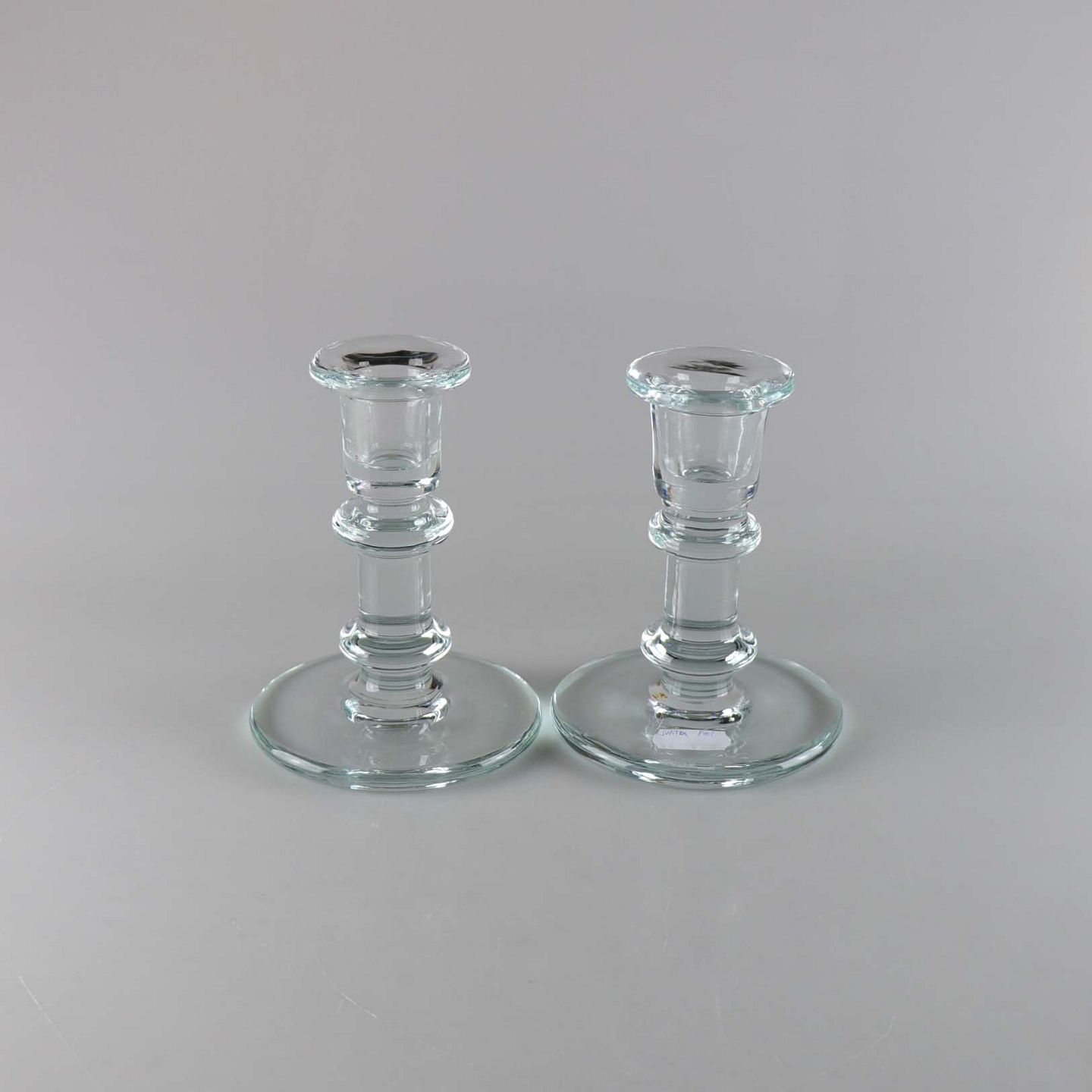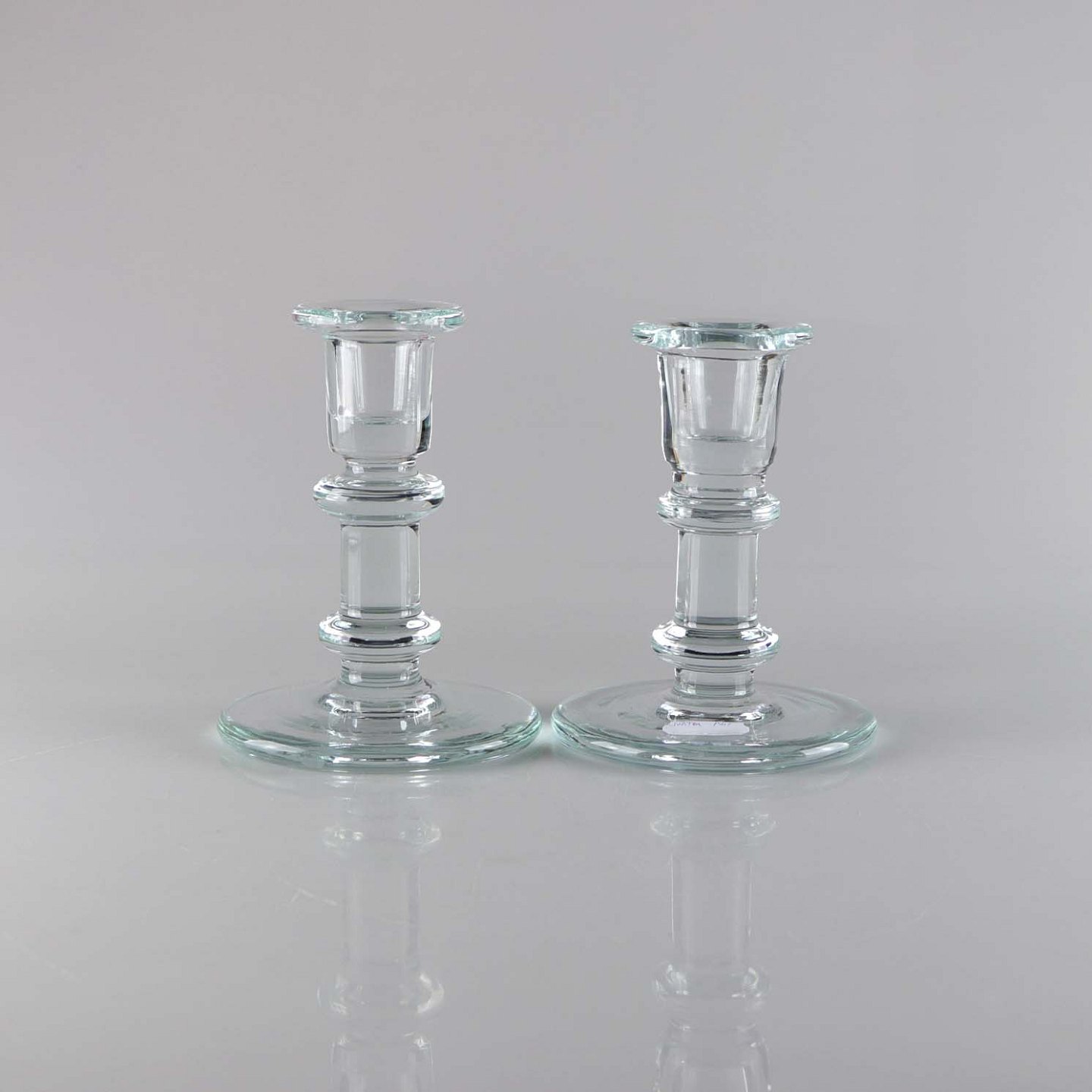 Sæt med 2 stager fra serien Jupiter i klart glas med blåligt skær