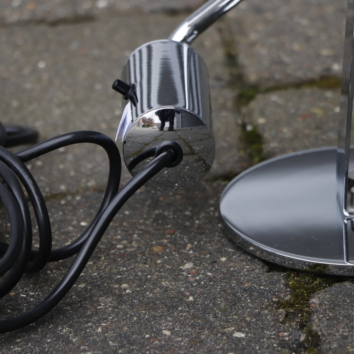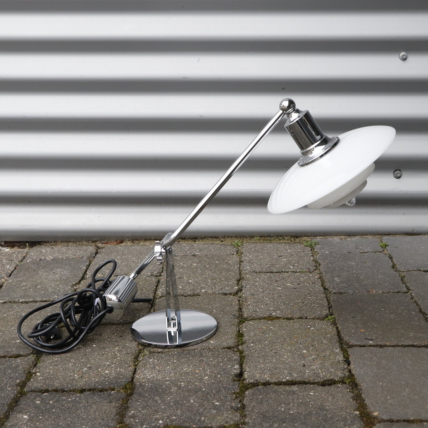 Elegant lampe med opal hvide glasskærme og blank stål stel