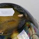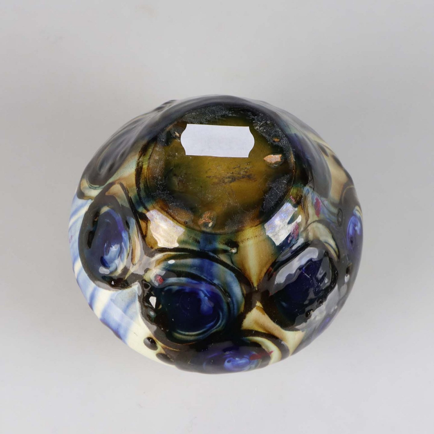 Vase med runde former i farverne brun, hvid og blå