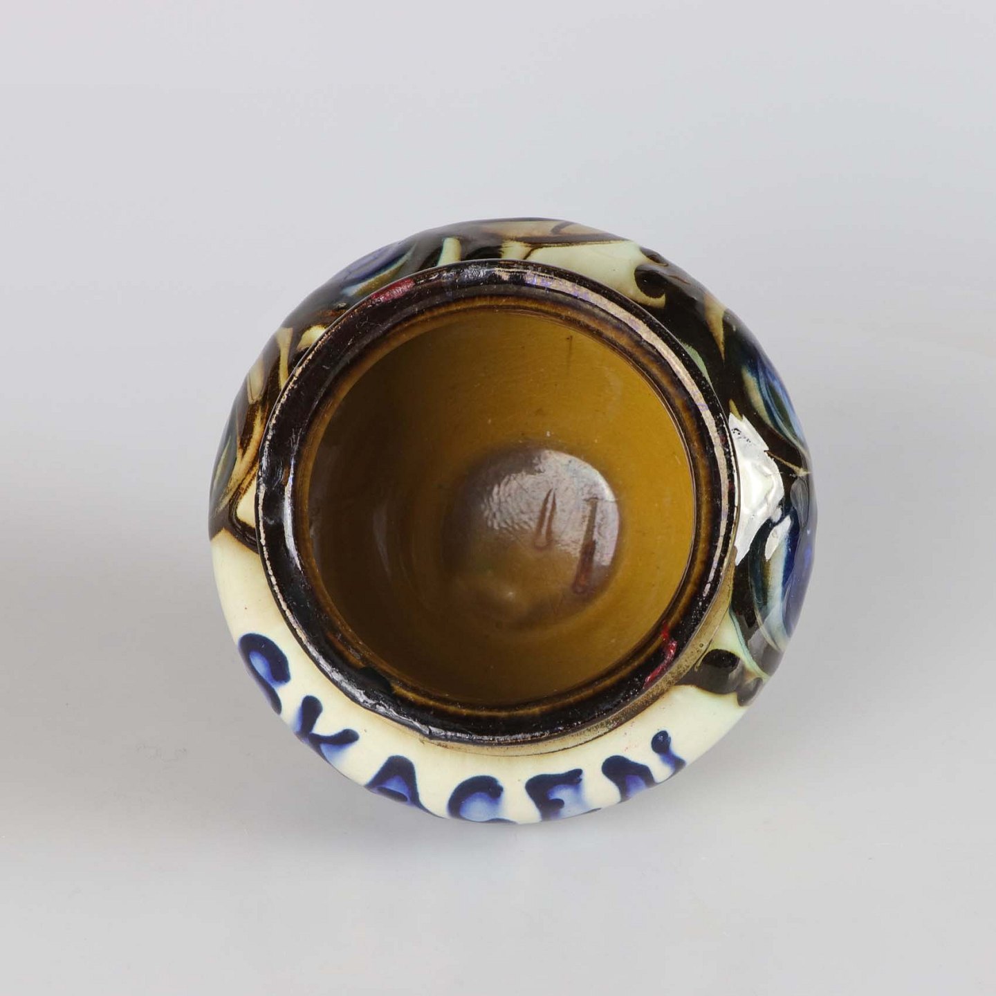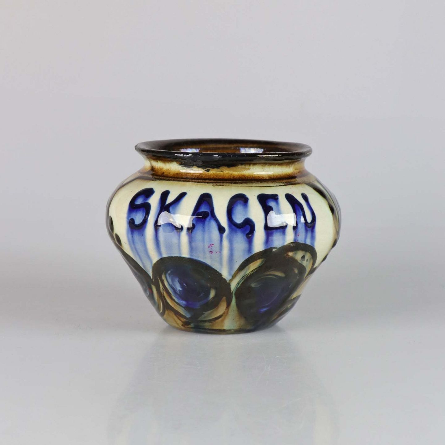 Skønvirke vase i glaseret keramik med teksten Skagen