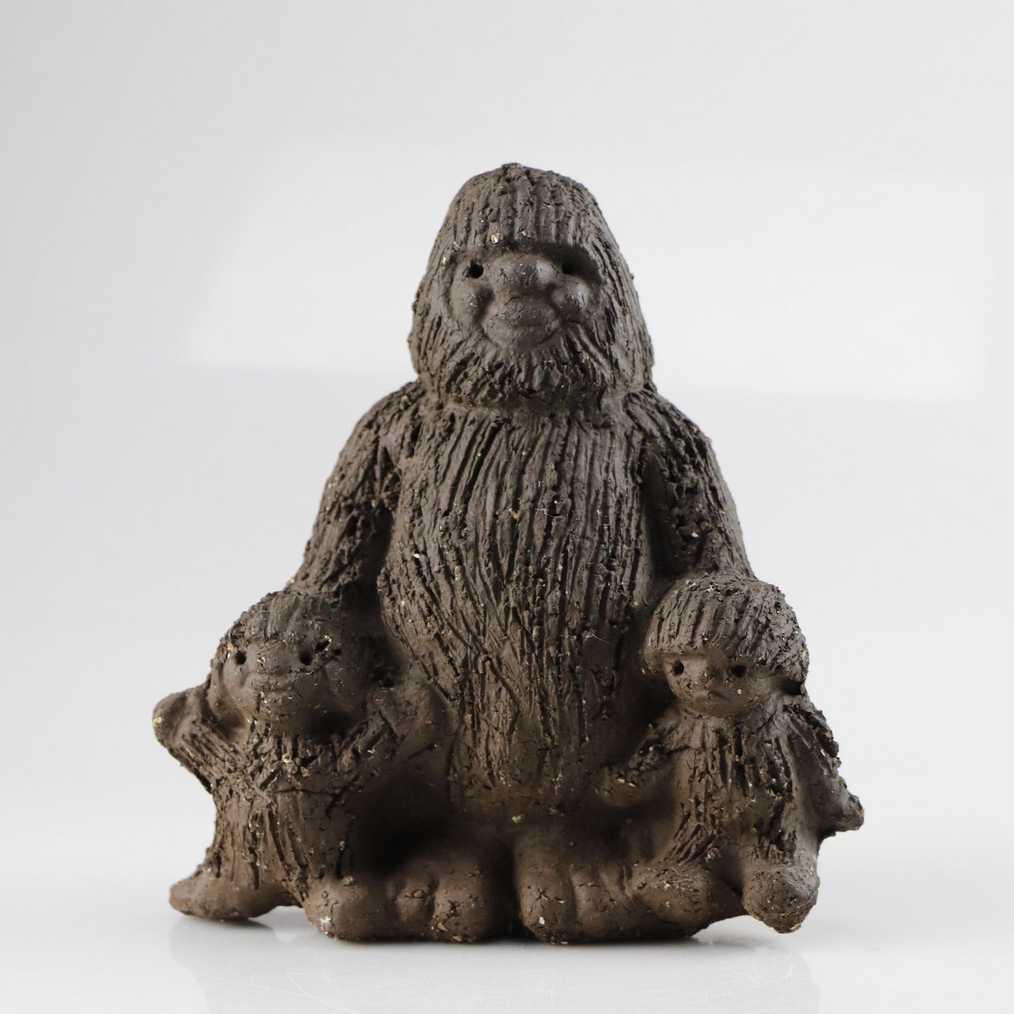 Figur i keramik med motiv af troldefar med to troldebørn