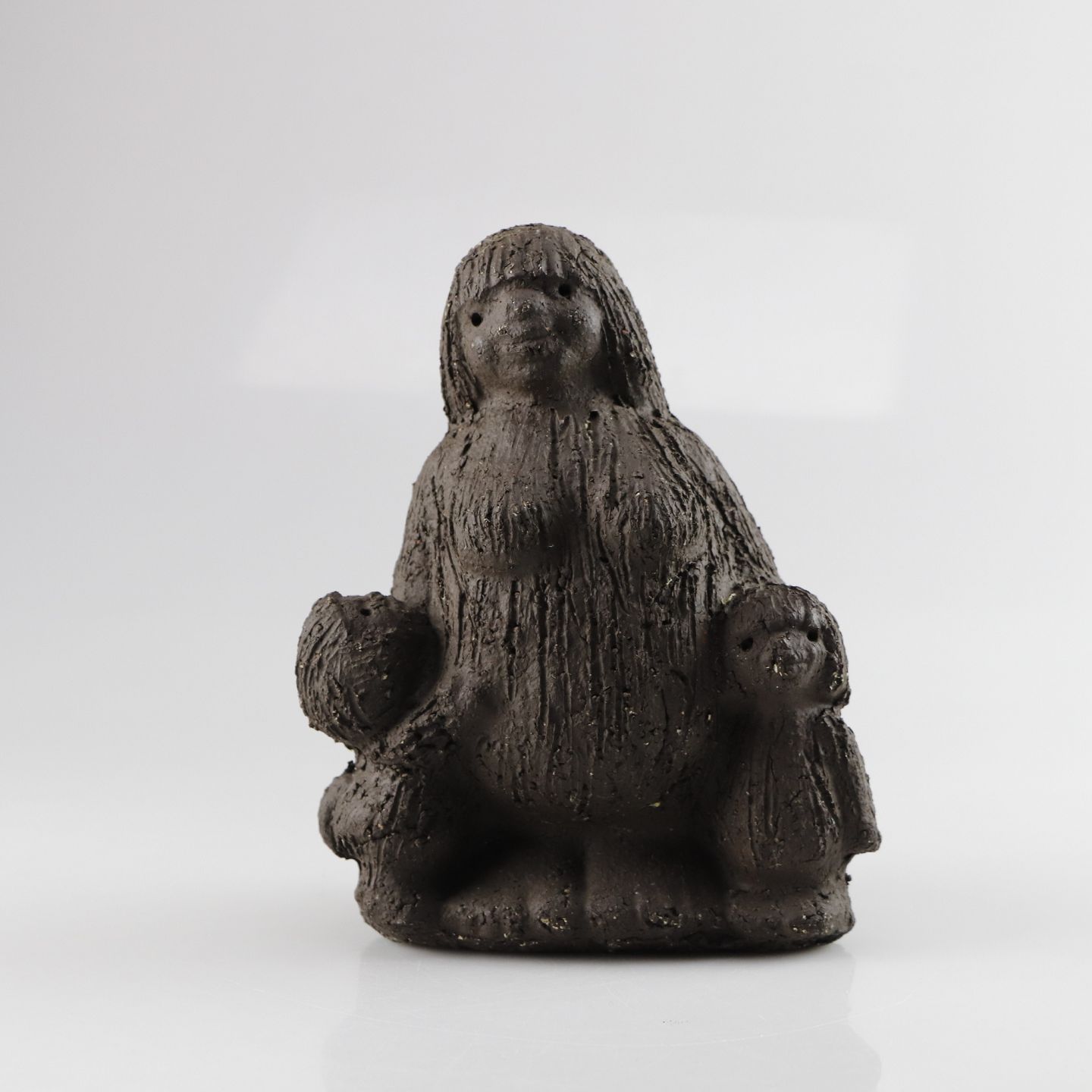 Figur i keramik med motiv af troldemor med to troldebørn